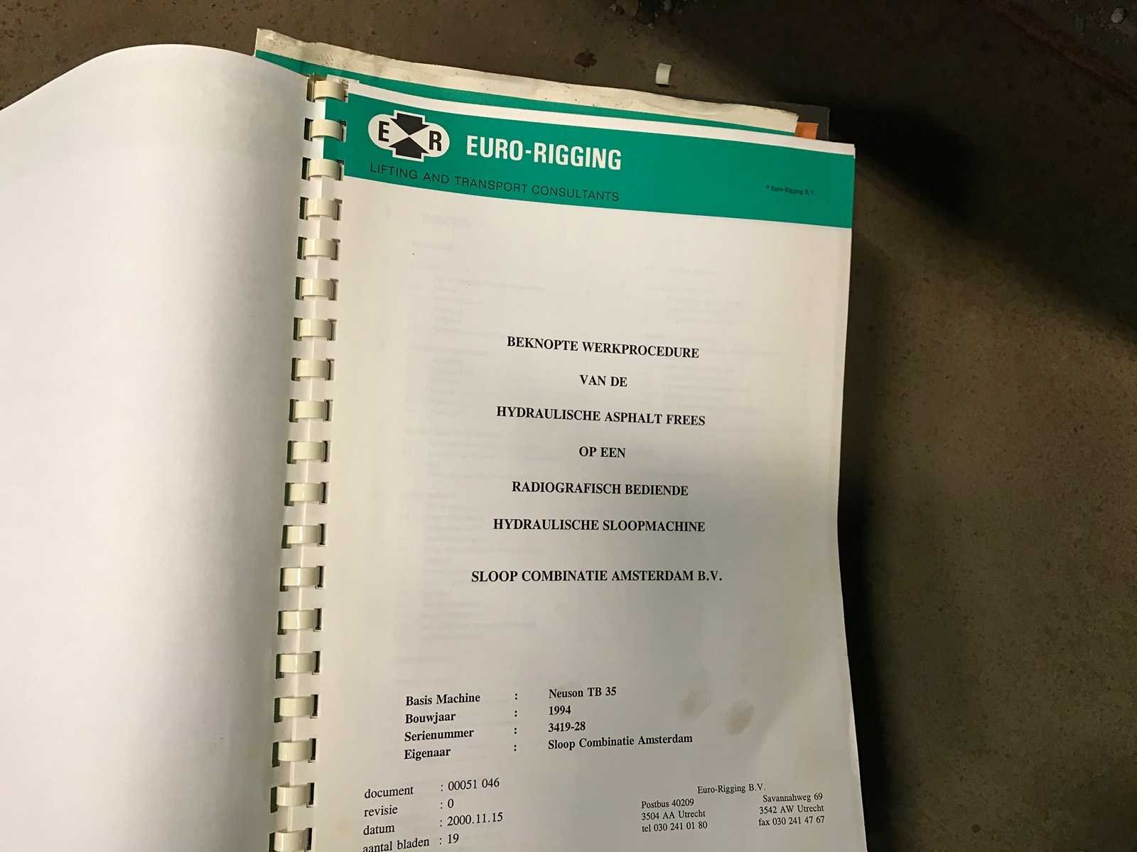 Voorzien van 4 hydraulische stempels; gieklengte circa 3600mm; inclusief rups onderstel; Hetronic radiografische bediening; SCA Grondfrees; De Gier Hijsevenaar; Type EG340; incl container chassis; diverse toebehoren Merk: Wacker neuson Type: TB 35 ED Bouwjaar: 1995 Serienummer: 22565 Afgelezen urenstand: 948 Met radiografische afstandsbediening: true Merk motor: Yanmar Motorvermogen (kW): 30,5kW Eigen gewicht: 4300kg