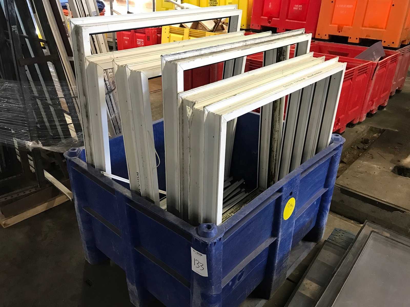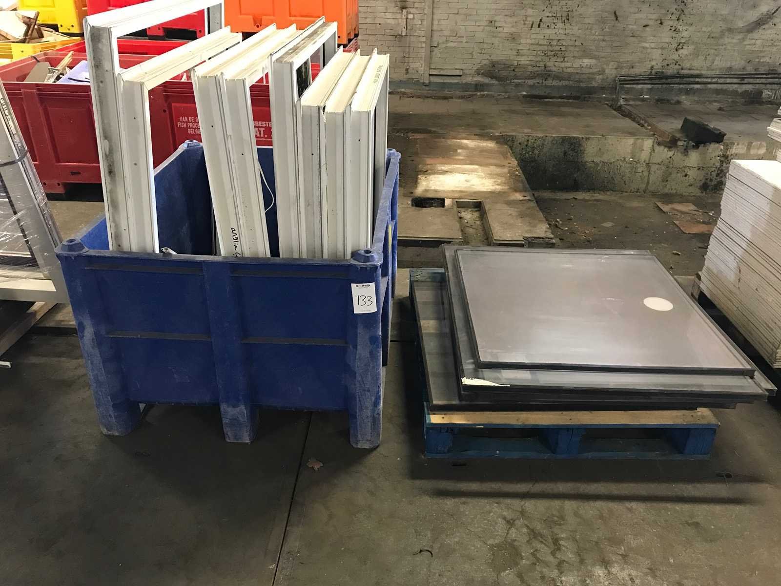 Kunststof kozijn; 6 glasplaten; onbekend of het bij elkaar hoort; exclusief plastic bak