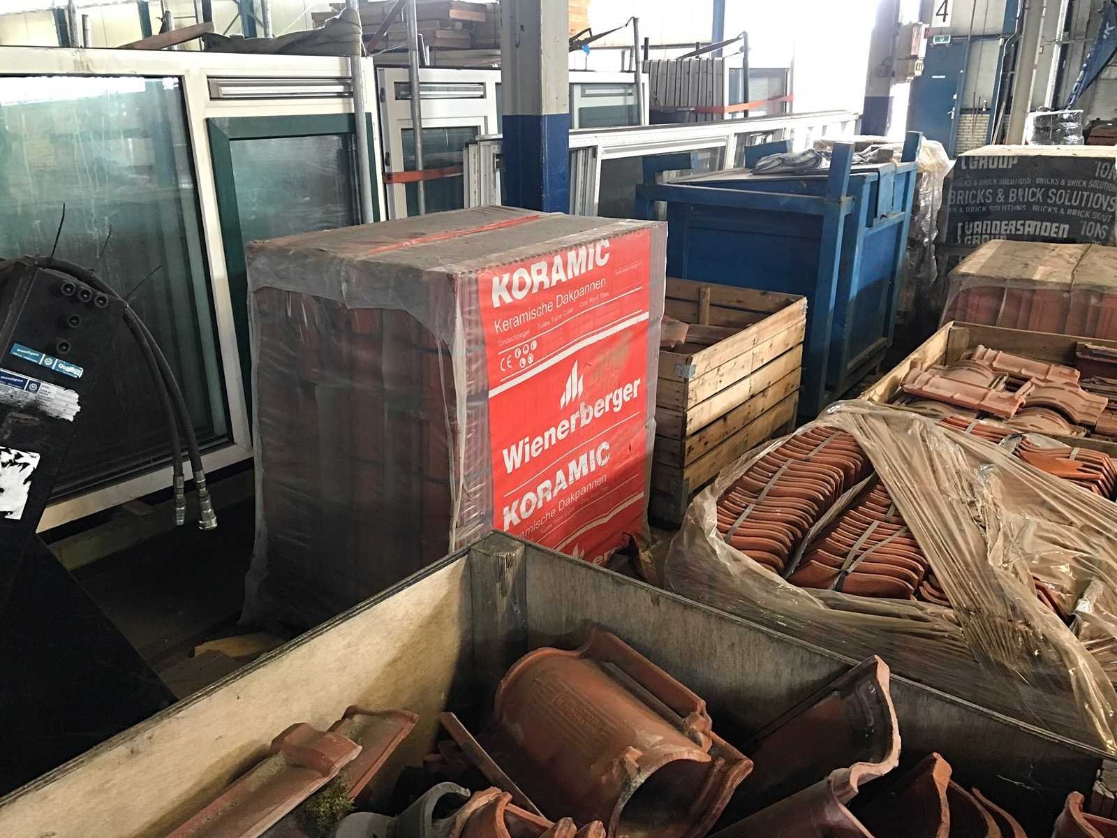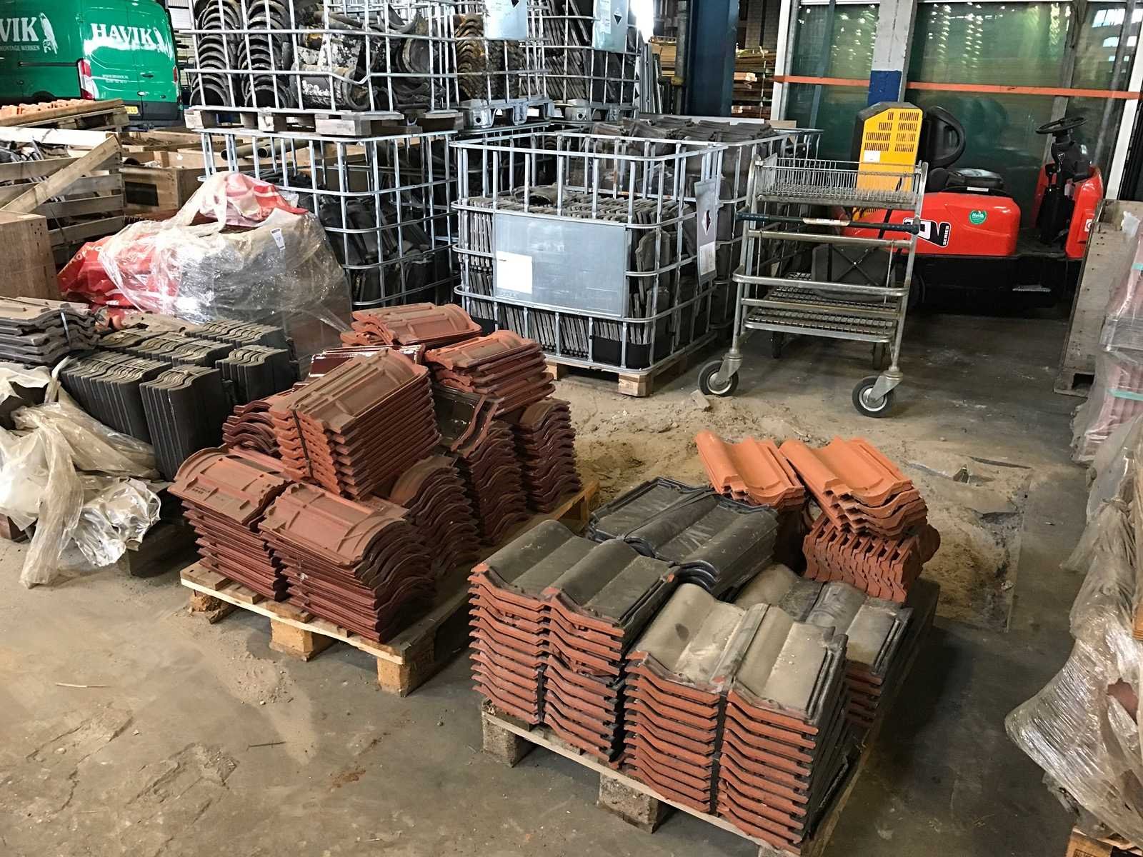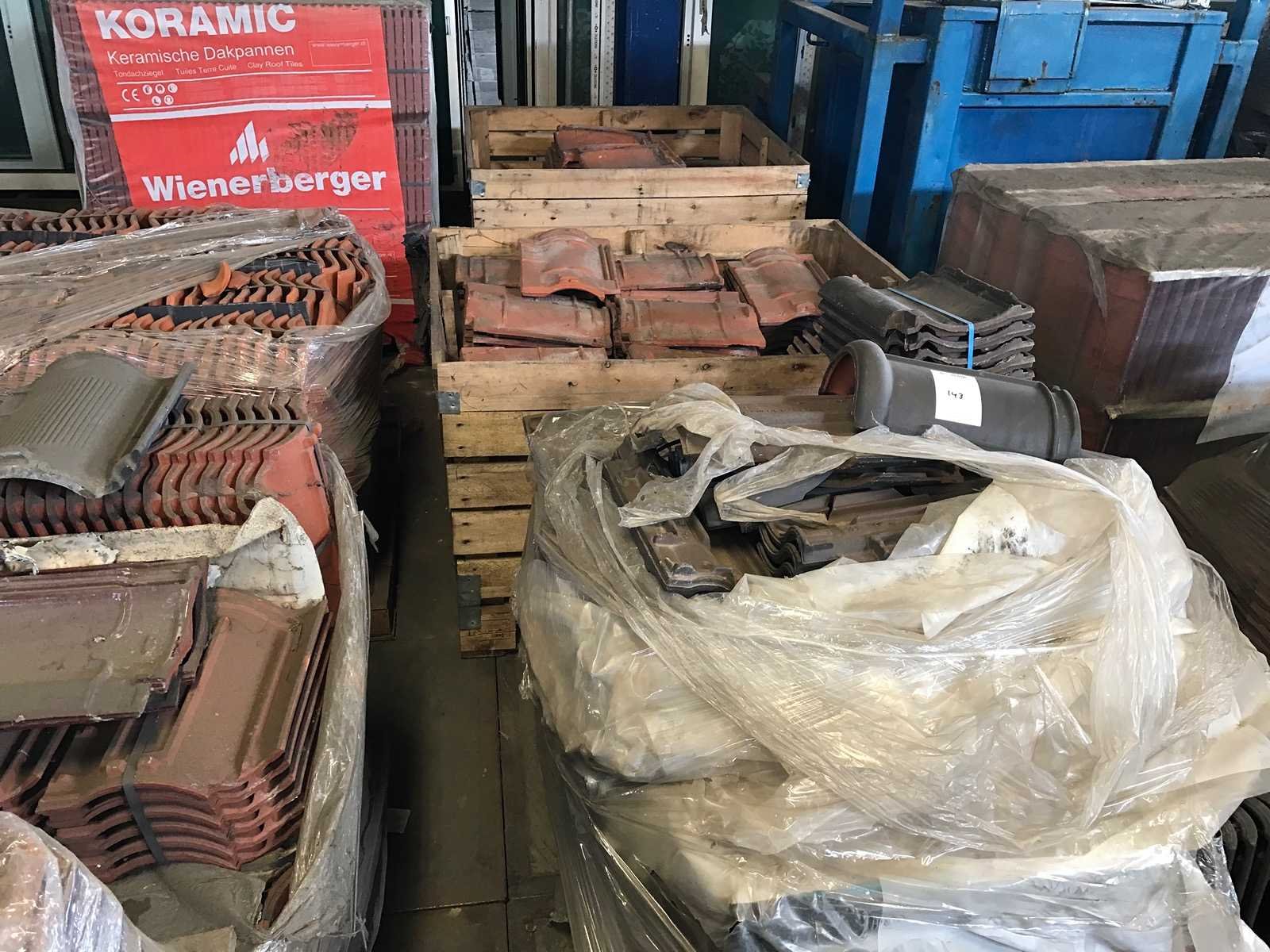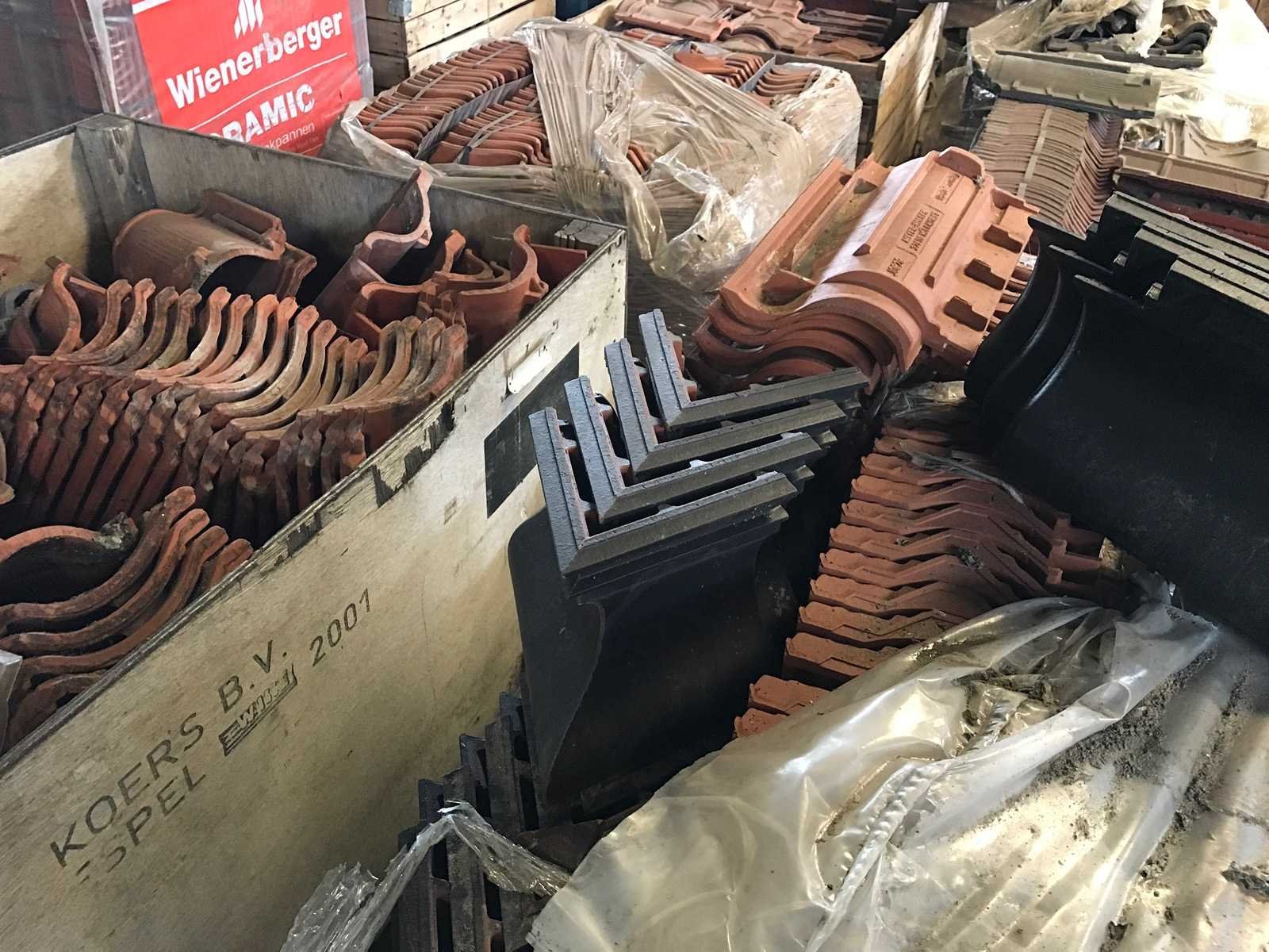 1 partij met 27 kratten en 20 pallets met diverse dakpannen en vorsten