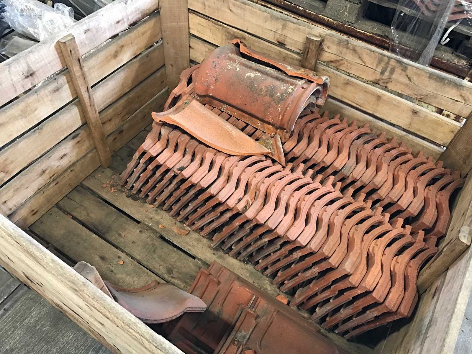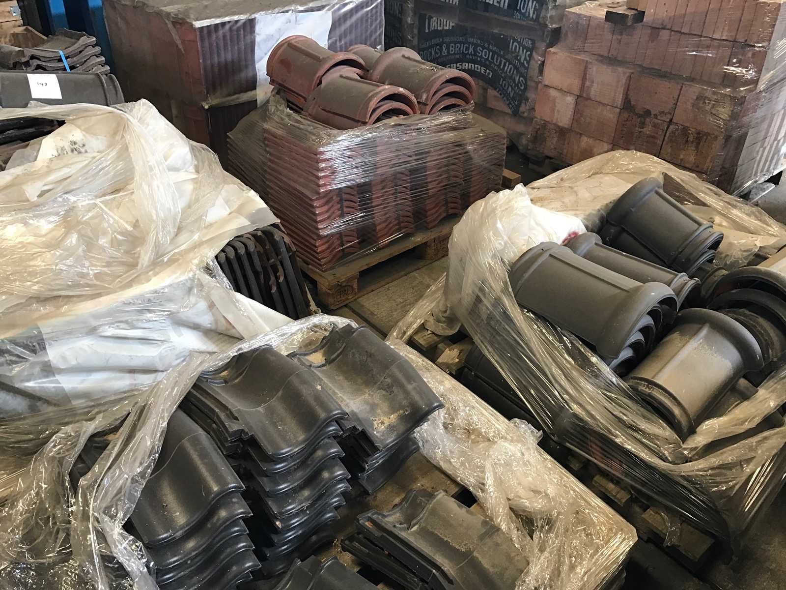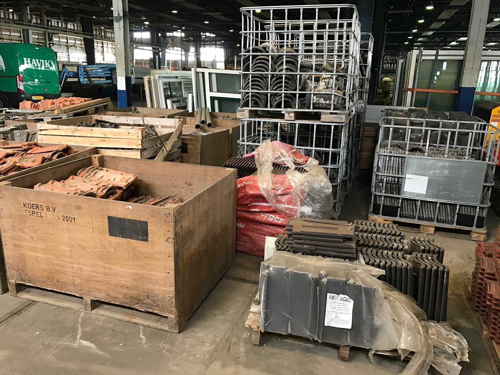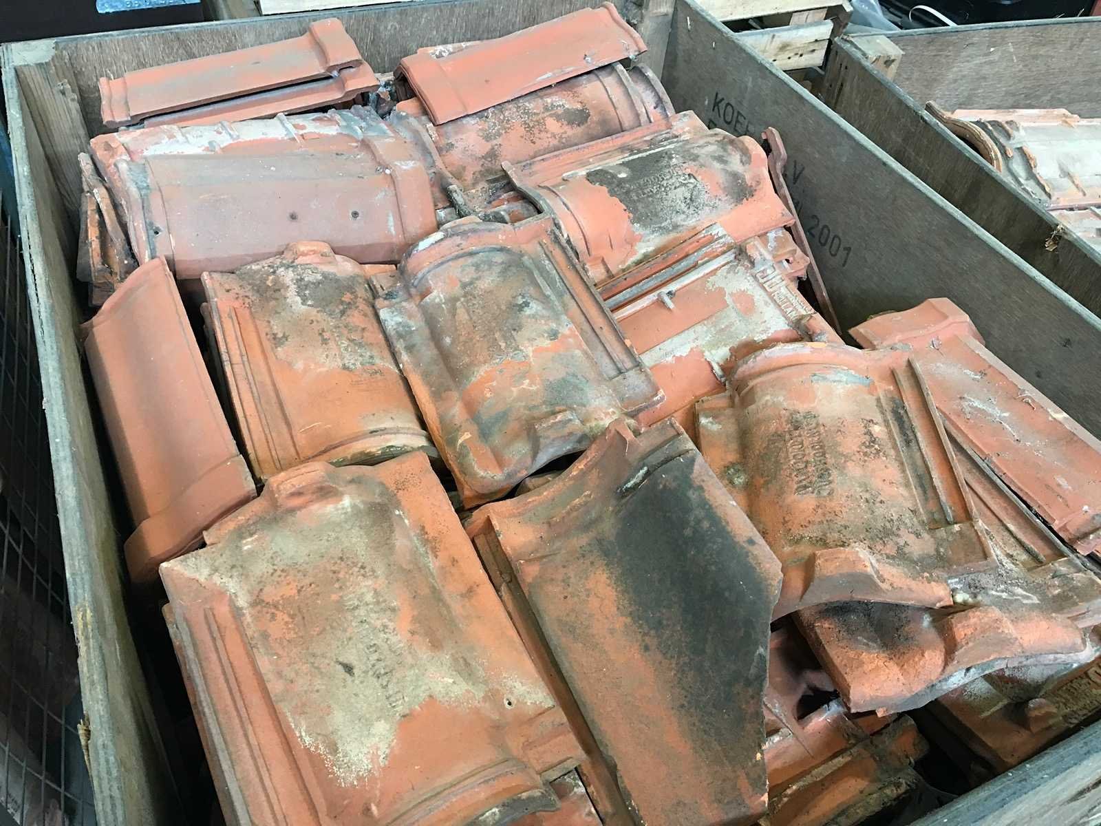 1 partij met 27 kratten en 20 pallets met diverse dakpannen en vorsten