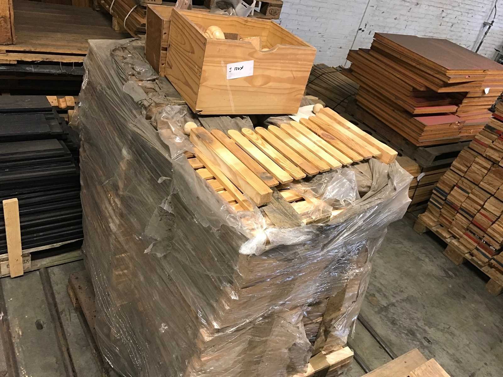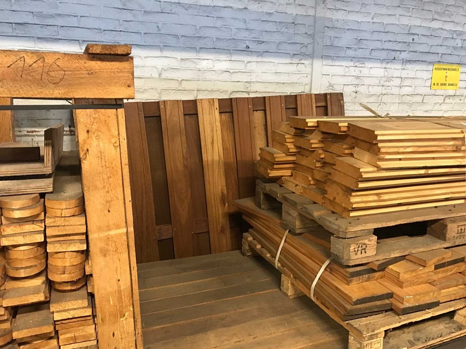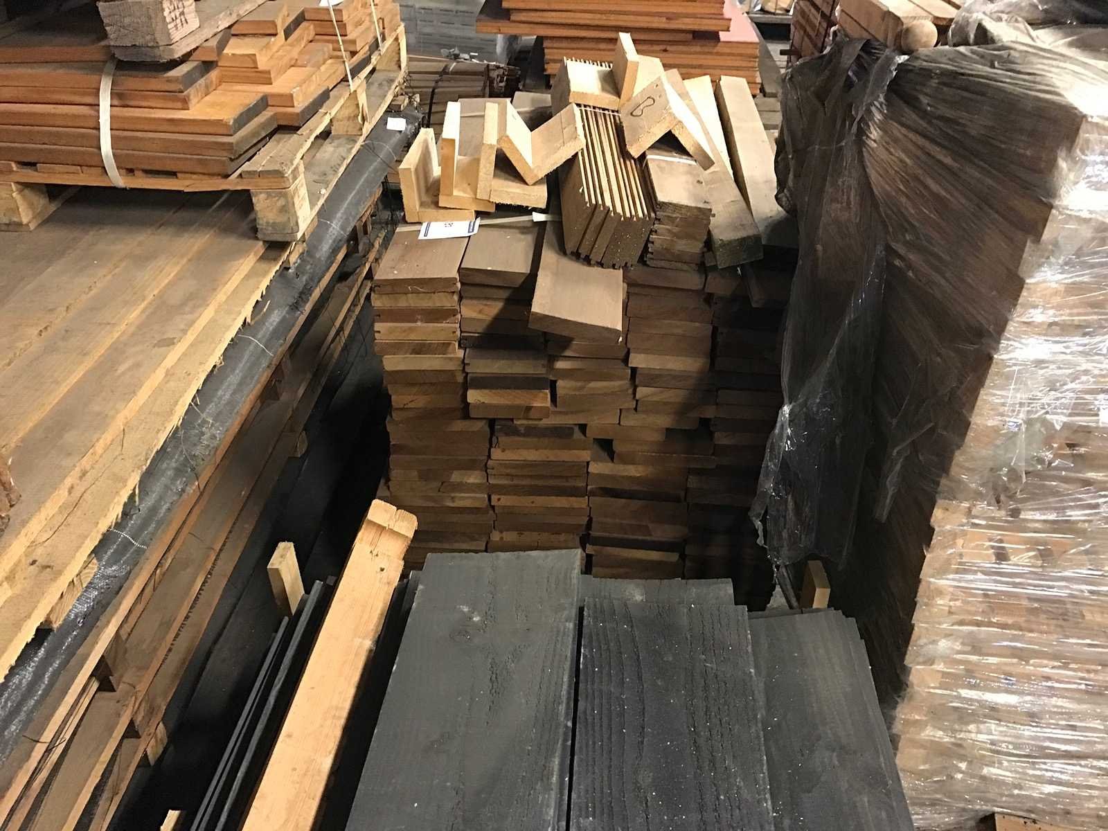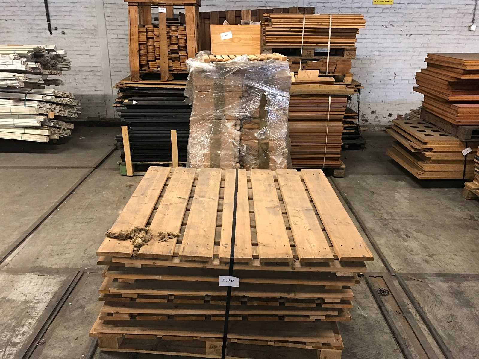 7 patrijen met tuinmateriaal 1e: beschoeiingschot 2e: vlonderplanken 3e: schuttingplanken 4e: tuinhekjes 5e: damwand