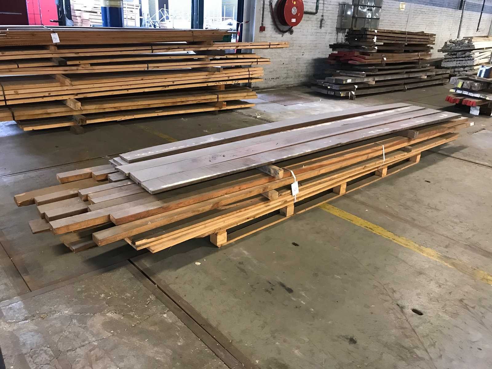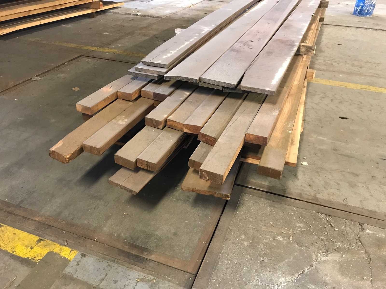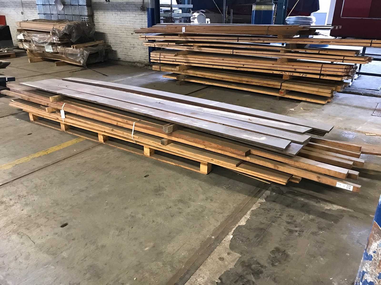 Partij hardhouten en vuren balken en planken circa 30 stuks