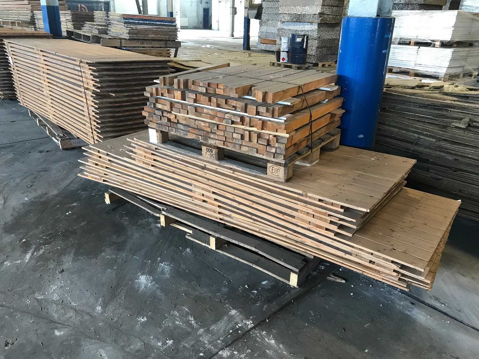 18x plafondschot waarvan 10x 910x2840mm; 8x 910x1870mm; 87x balken 60x60x910mm met inkepping Lengte: 284cm Breedte: 91cm Materiaal: hout