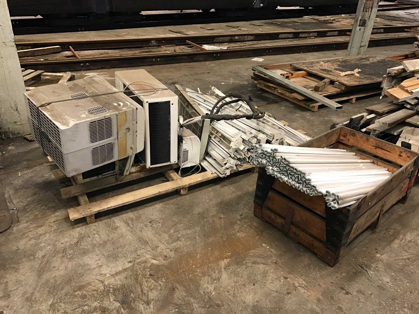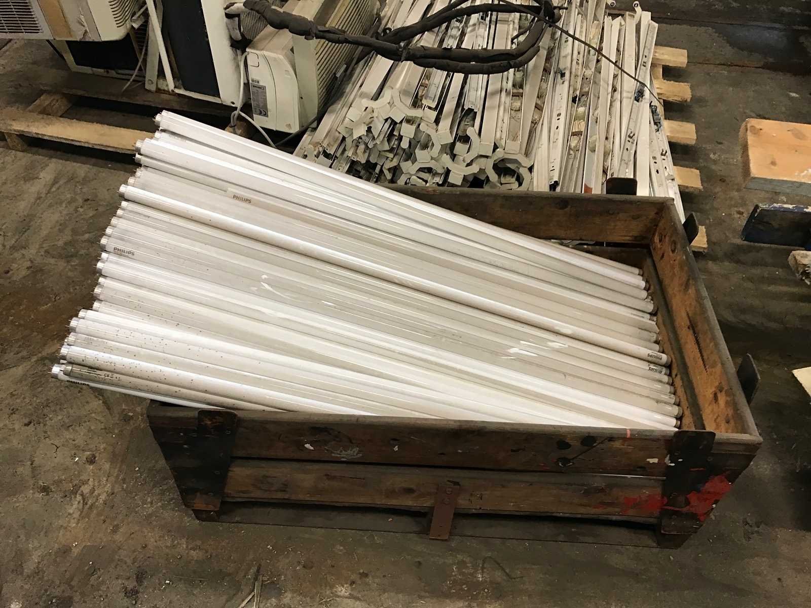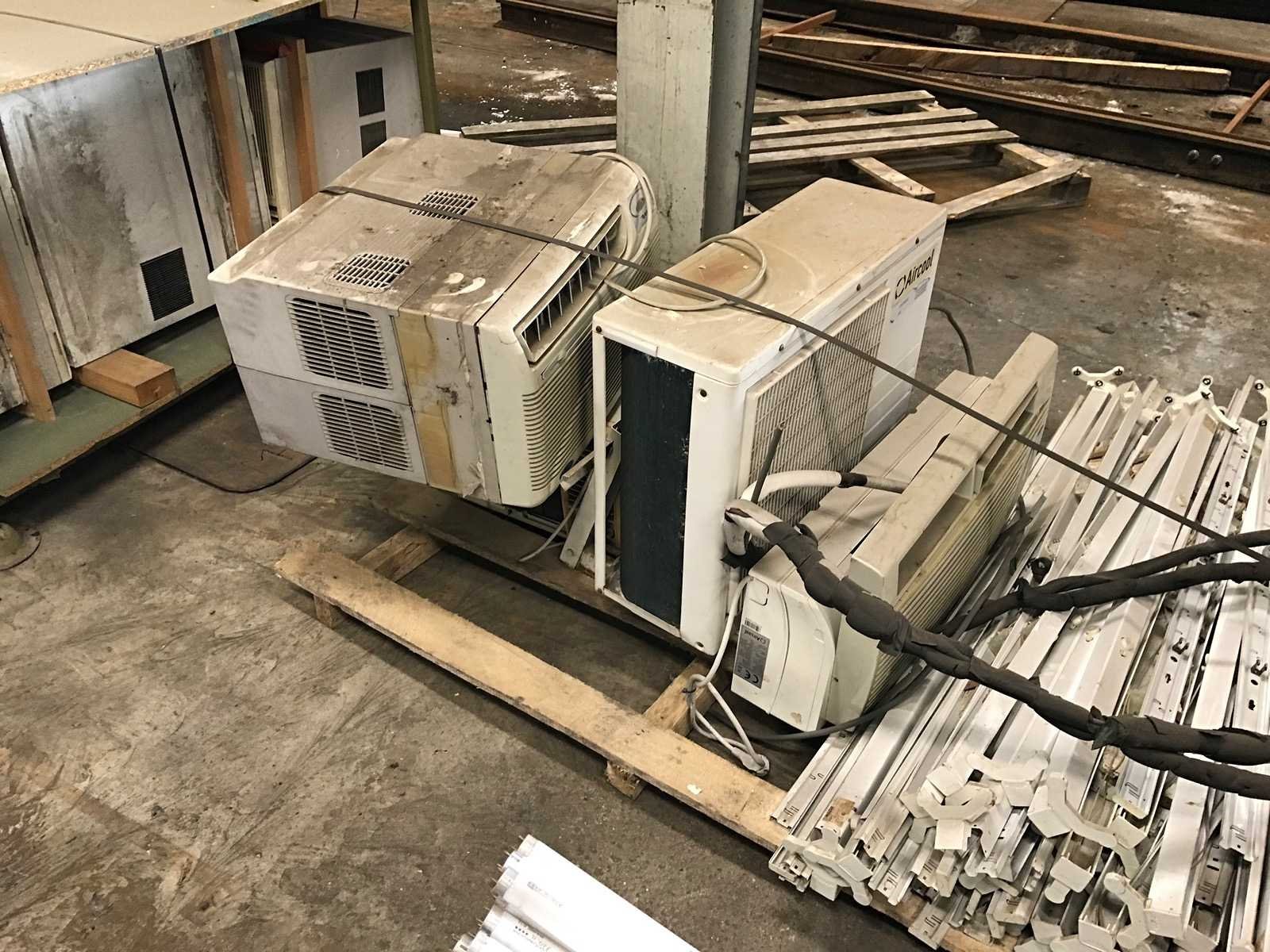 Partij met 3 airconditioning units; werking onbekend; partij armaturen en een kist tl lampen
