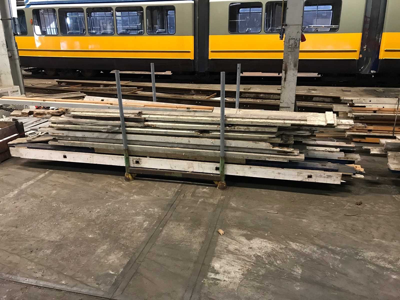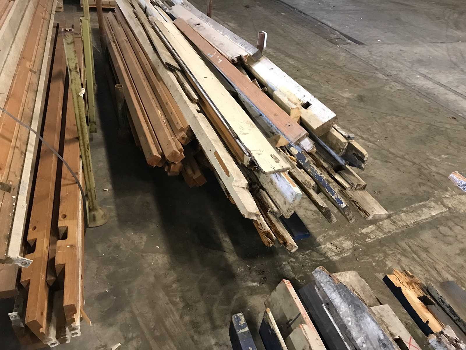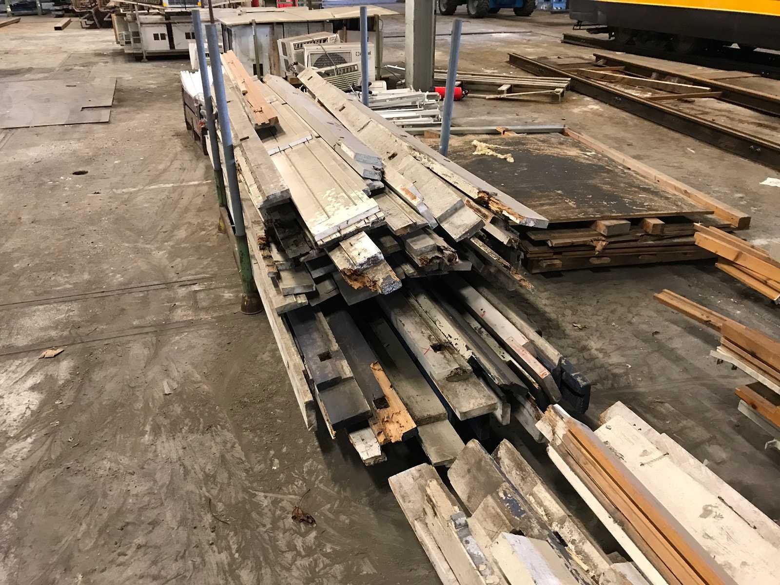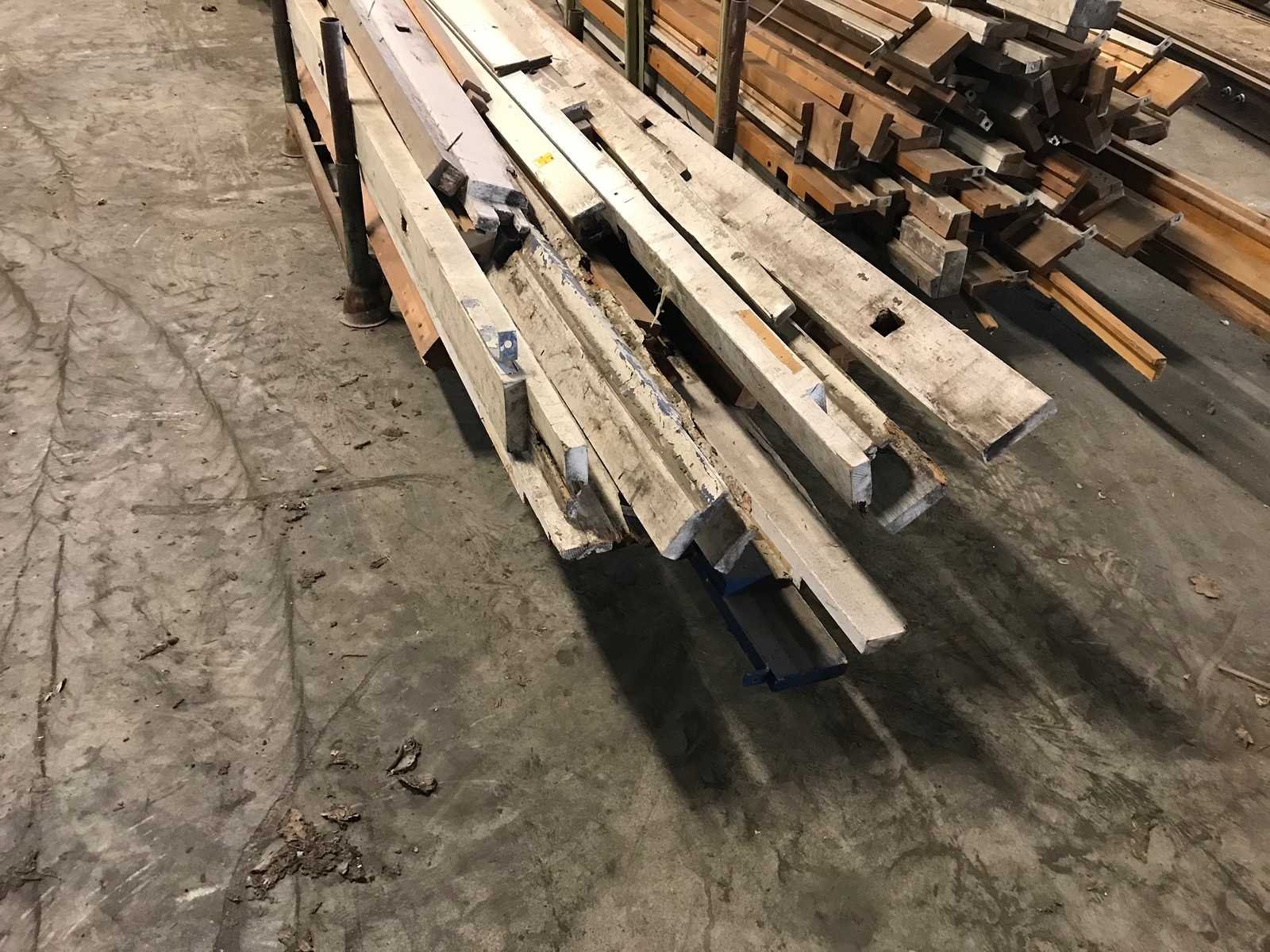 3 bokken met schottenkeet onderdelen; waaronder diverse boven en onder wandbalken; waterbord; diverse onderdelen in slechte staat Materiaal: hout