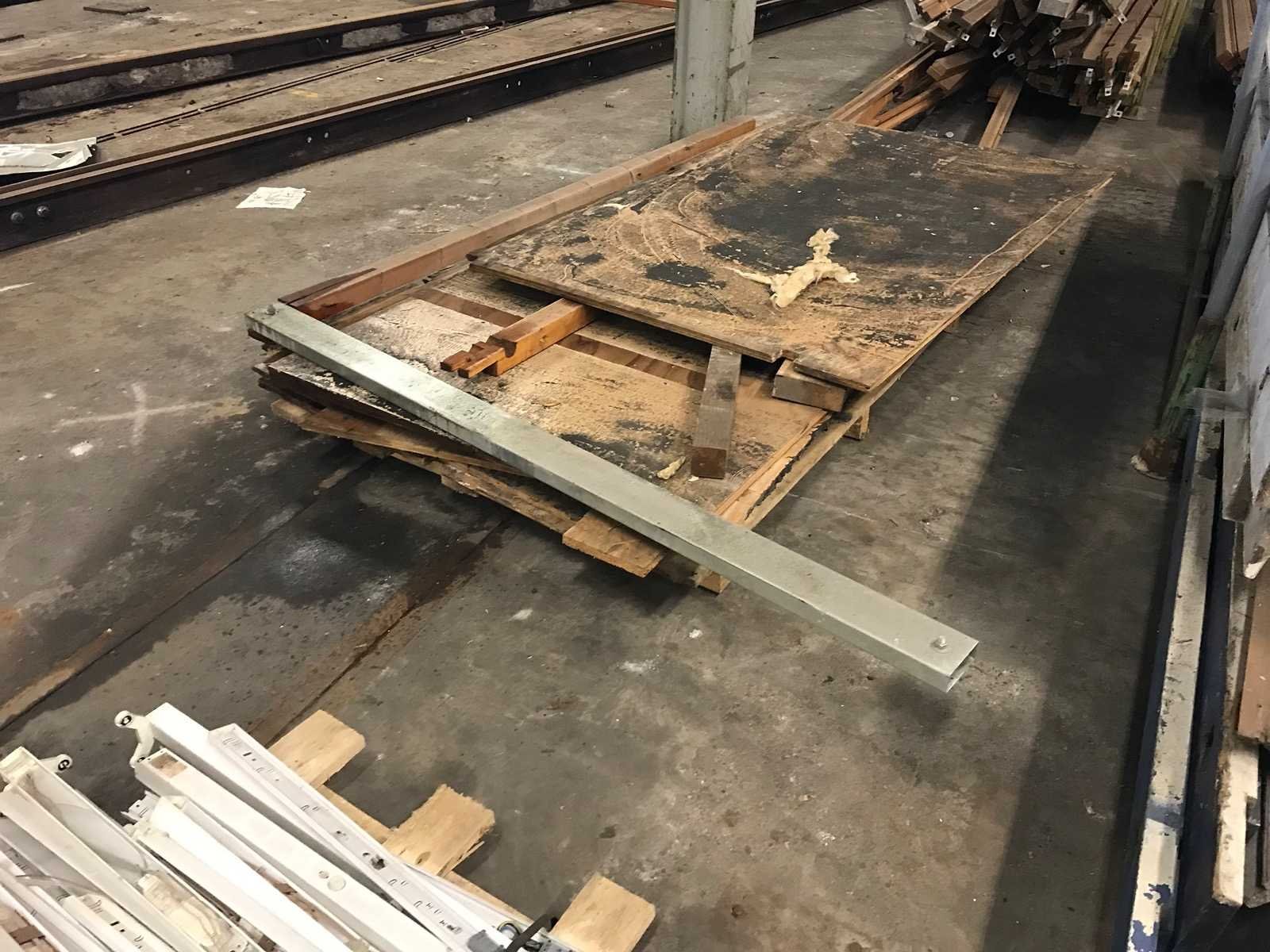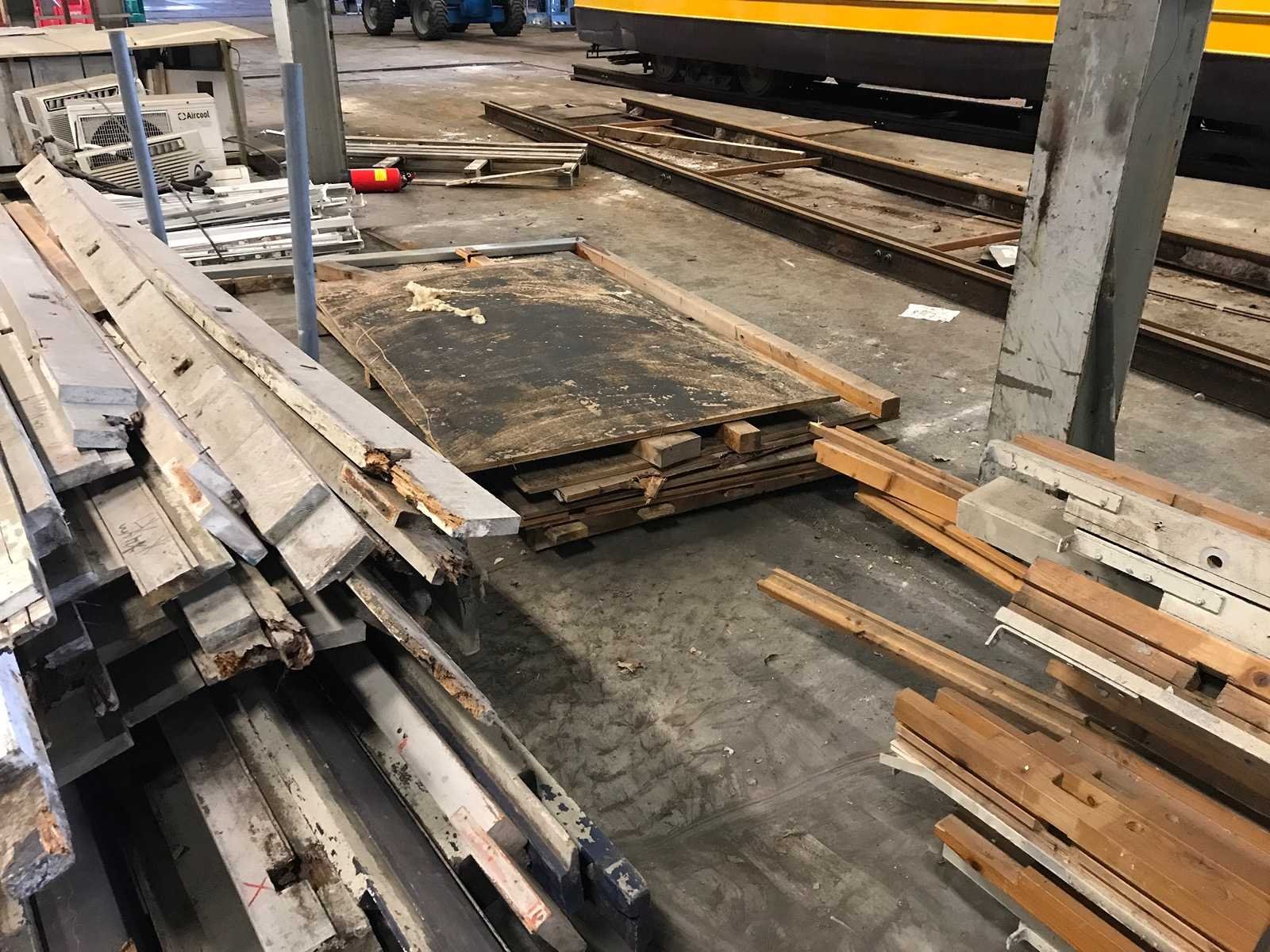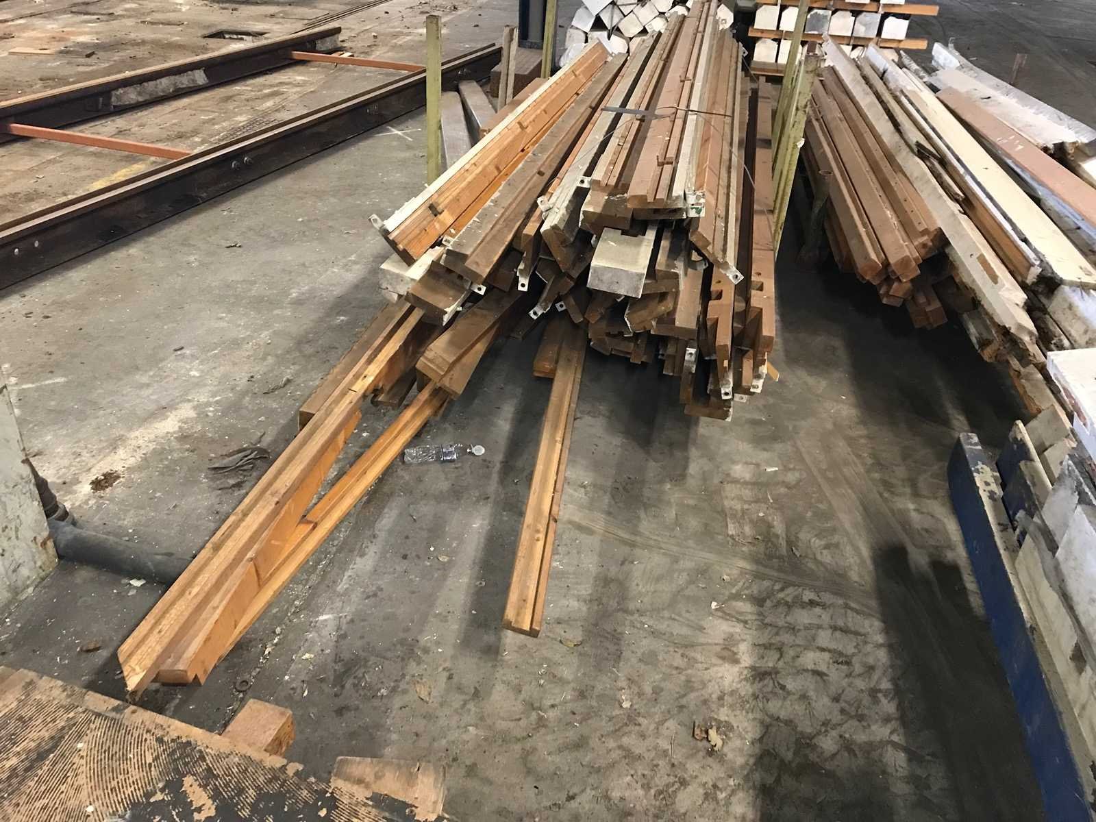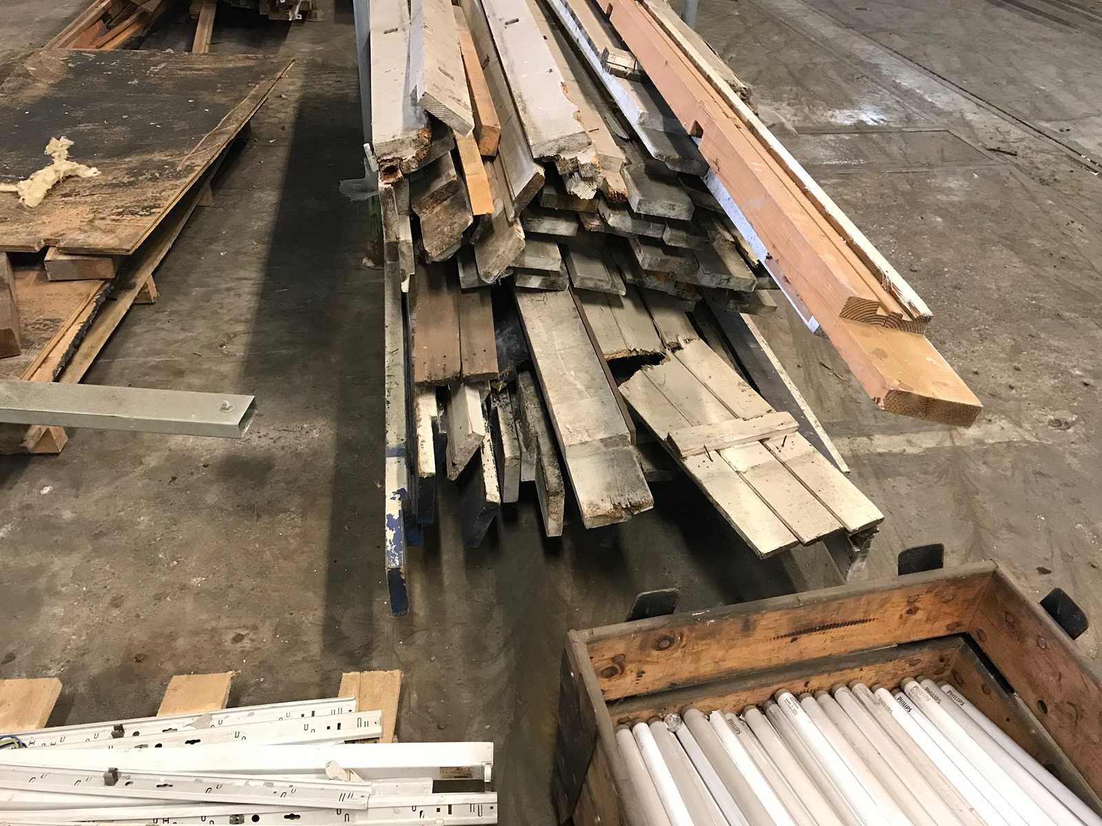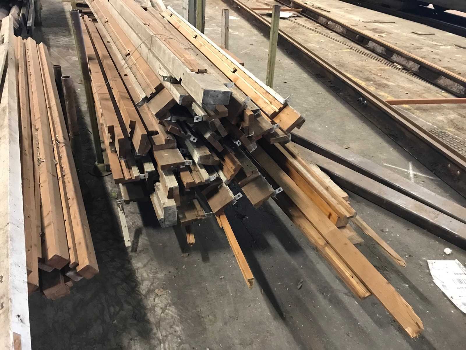 3 bokken met schottenkeet onderdelen; waaronder diverse boven en onder wandbalken; waterbord; diverse onderdelen in slechte staat Materiaal: hout