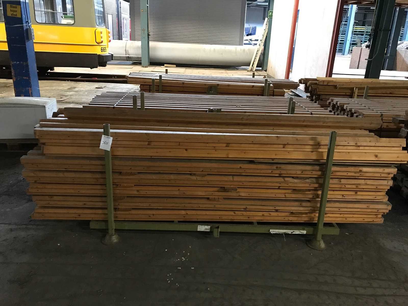 Circa 135 plafond balken 280cm lang; circa 120 staanders 230cm lang;te behoeve van schottenkeet Materiaal: hout