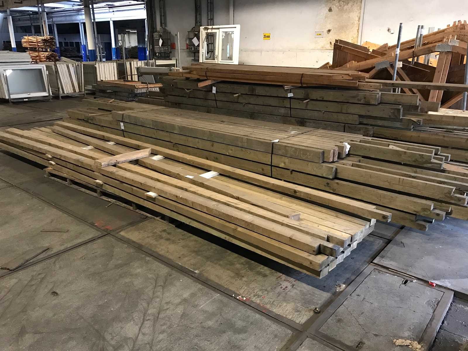 Circa 80 vloerbalken; kopmaat 60x120mm; diverse lengtes Afmeting b: 60mm Afmeting h: 120mm