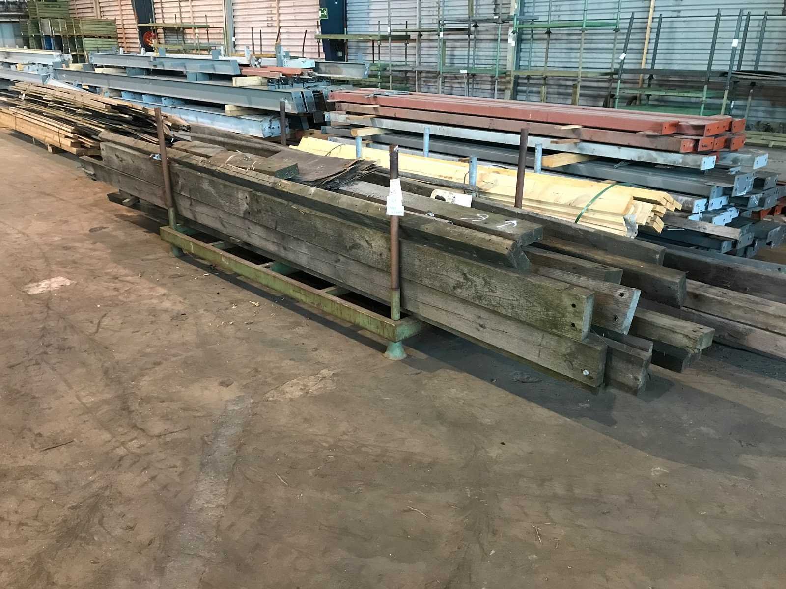 Rek met gebruikte vuren balken; kopmaat circa 70x190mm; diverse lengtes Kopmaat: 70x190mm