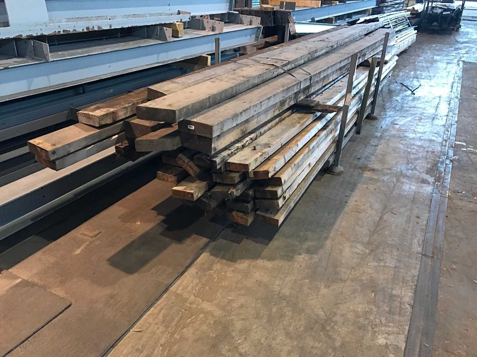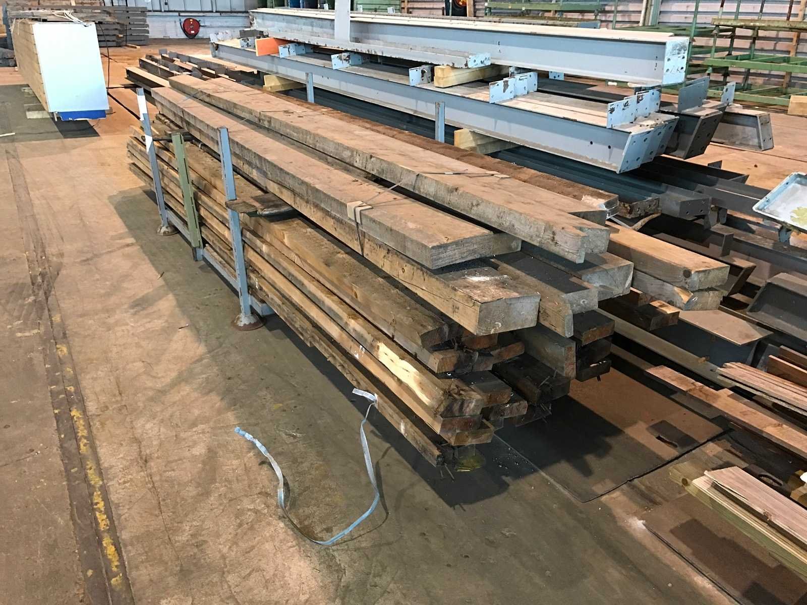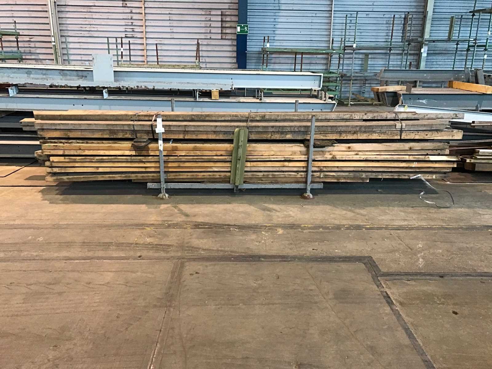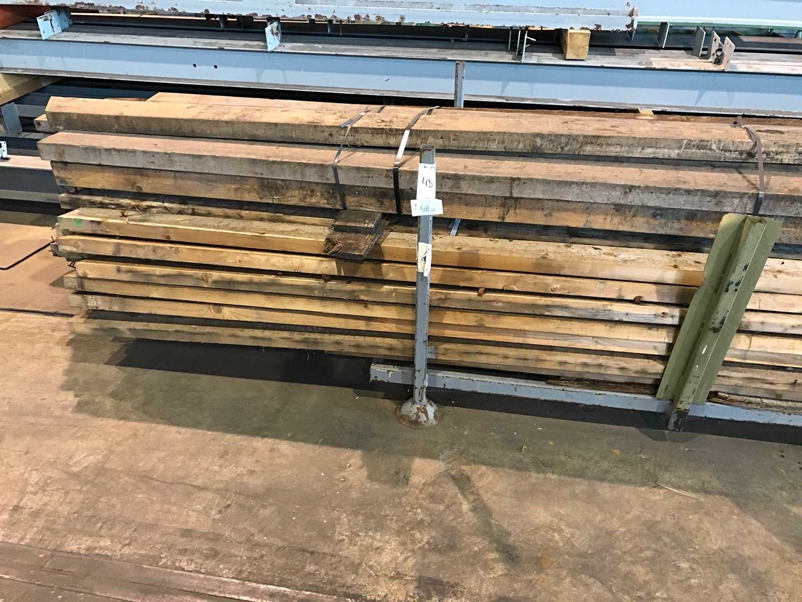 Rek met gebruikte vuren balken; circa 48 stuks; kopmaten onderandere 45x145mm en 70x170mm