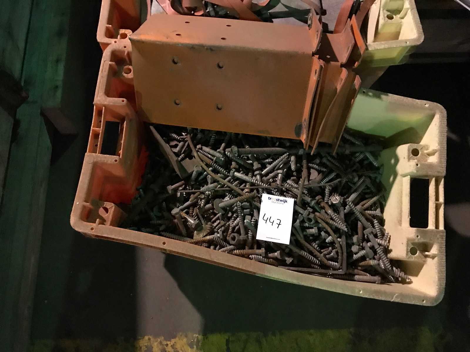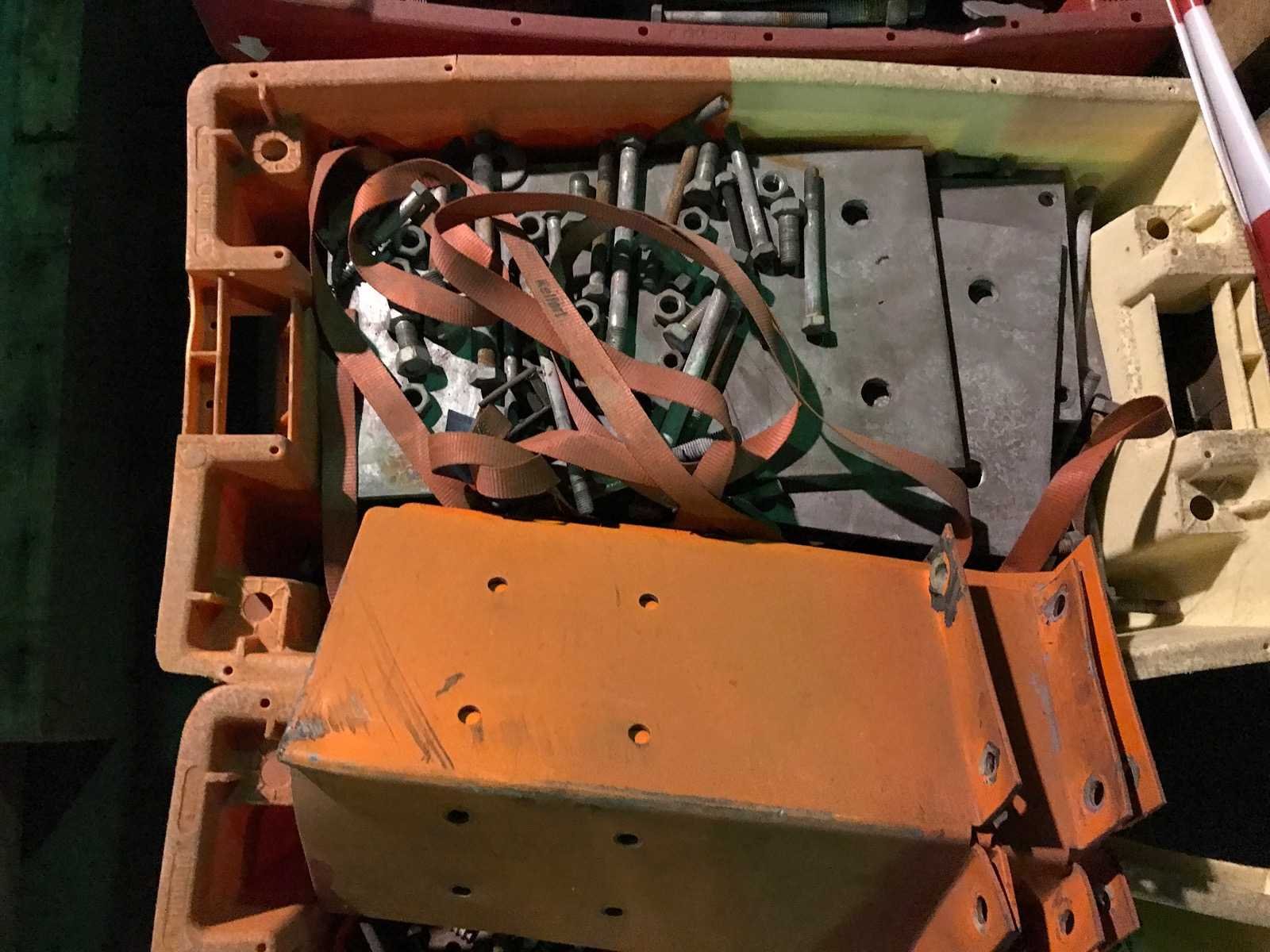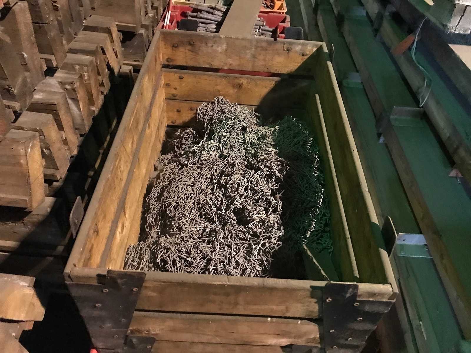 4 kratten met ijserwaren; kettingen; draadeind; ringen; platen en bouten