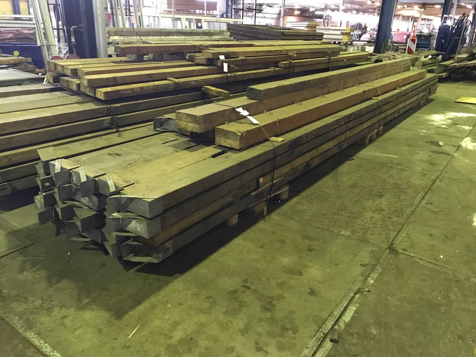 Circa 27 vuren balken; meeste kopmaat 85x230x9000mm Kopmaat: 85x230mm Afmeting l: 9000mm Afmeting b: 85mm Afmeting h: 230mm