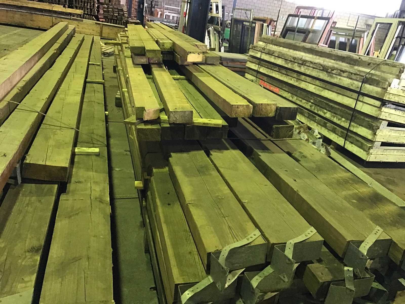 Circa 40vuren balken; circa 24x kopmaat 85x230x9000mm; circa 12x 70x135x7000mm Kopmaat: 85x230mm Afmeting l: 9000mm Afmeting b: 85mm Afmeting h: 230mm