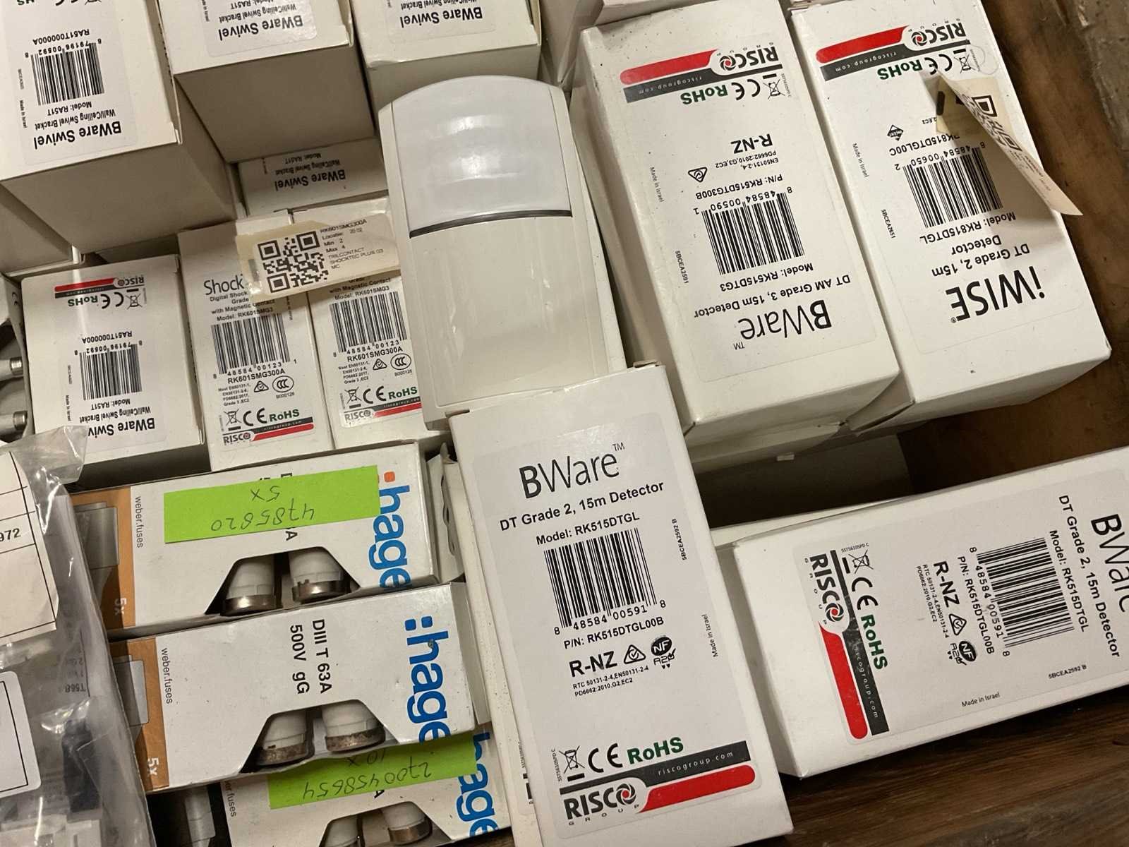Bestaande uit: o.a. alarm systeem detectoren & toebehoren, smeltpatronen, inbouwdozen, stekkers, stopcontacten, etc.