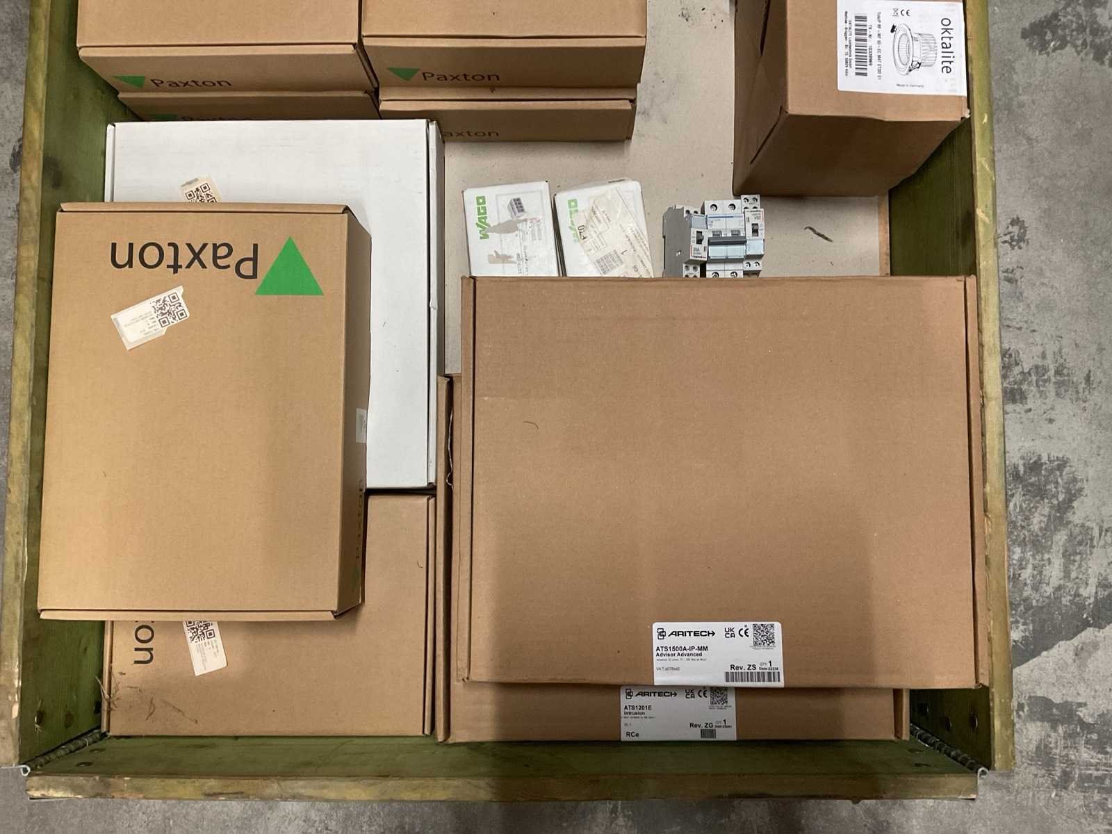Bestaande uit: o.a. alarm schakelkasten, installatieautomaten, lasklemmen, inbouw downlighters, etc.