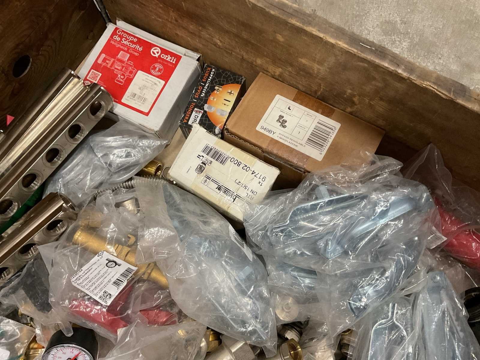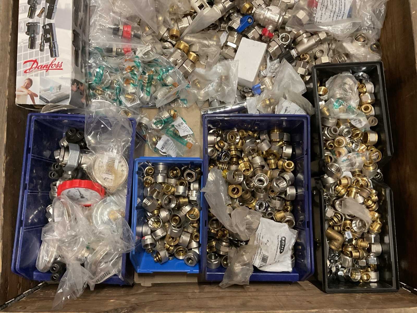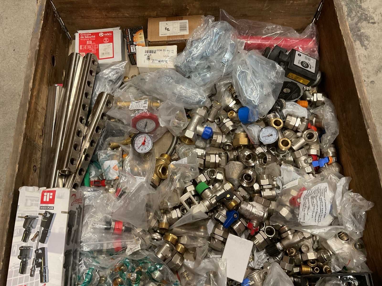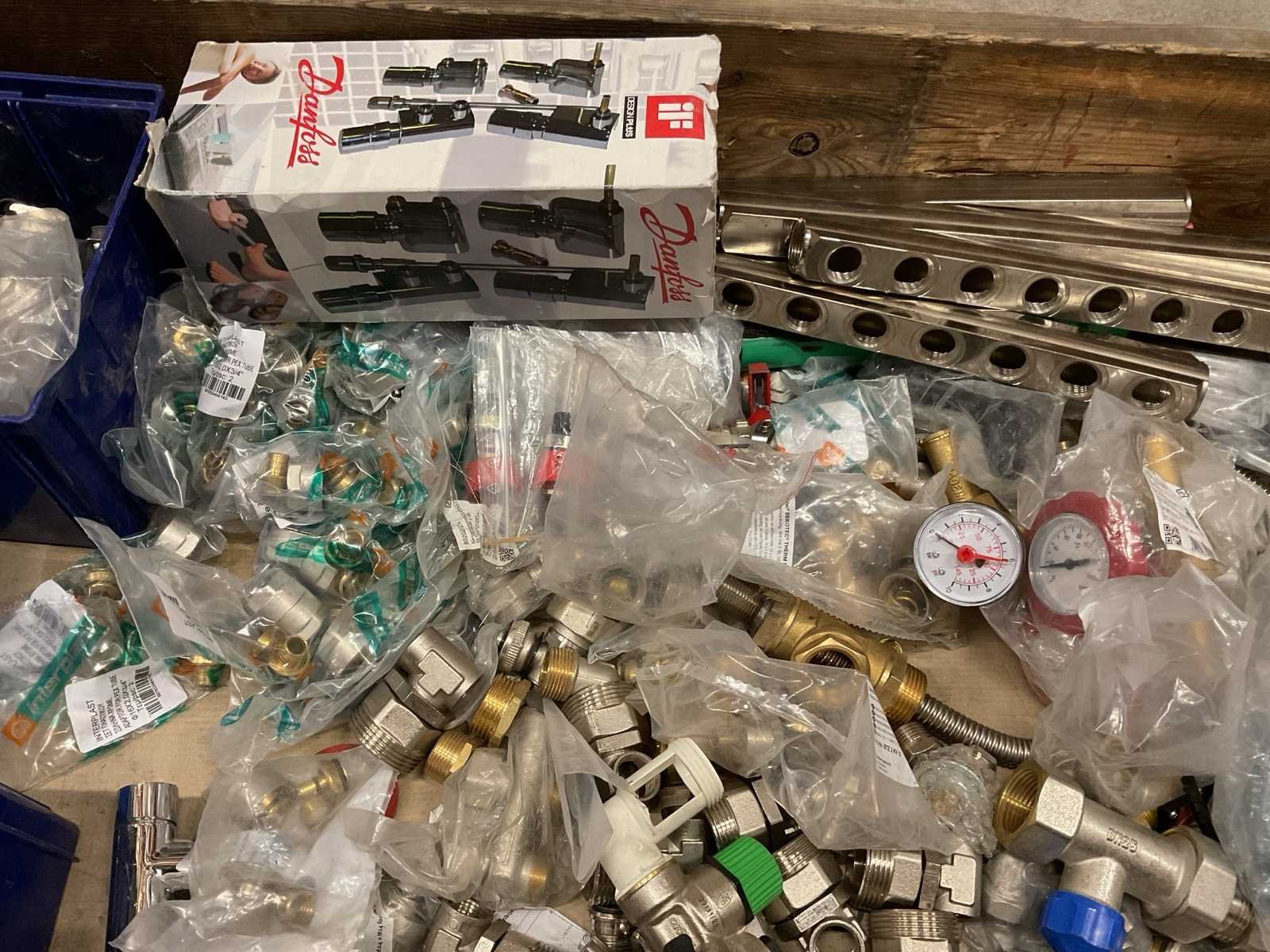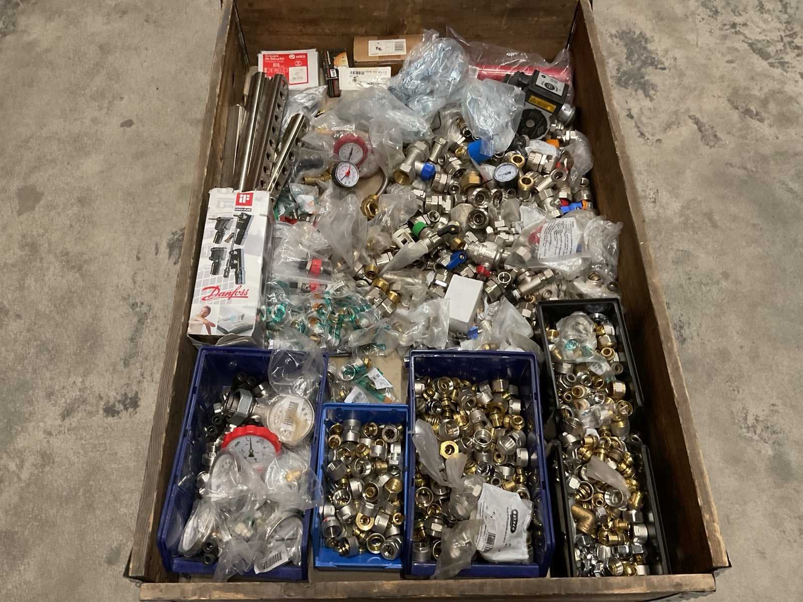 O.a. radiator aansluitmateriaal, temperatuurmeters, afsluiters, circulatiepomp, fittingen, etc.
