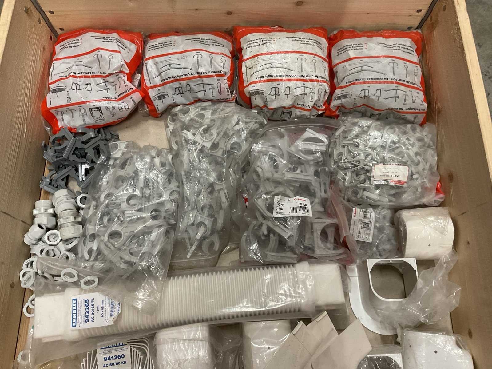 Bestaande uit: o.a. airco kabelgoot toebehoren, wartels, buisklemmen, etc.