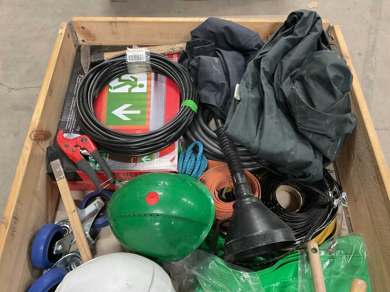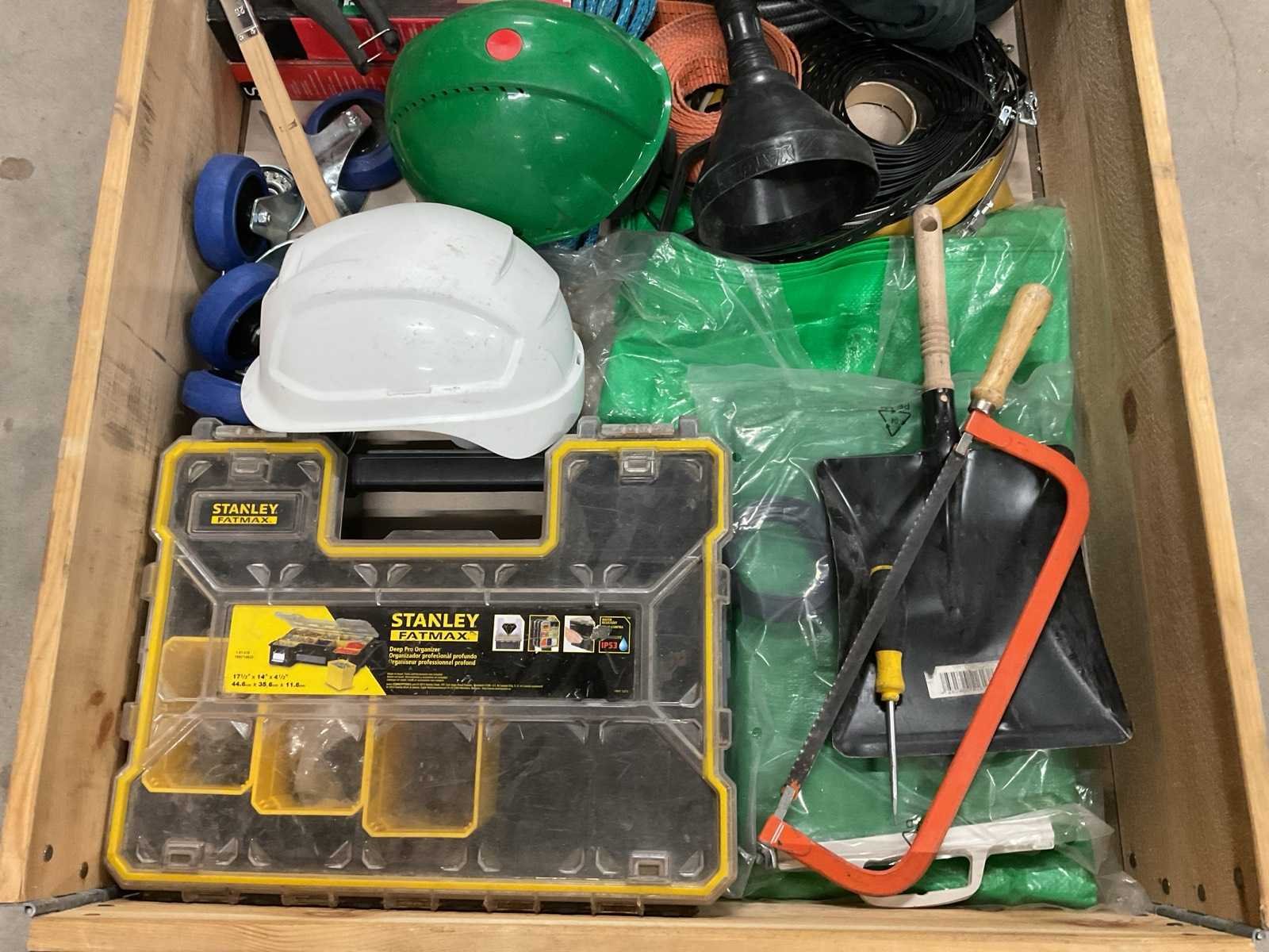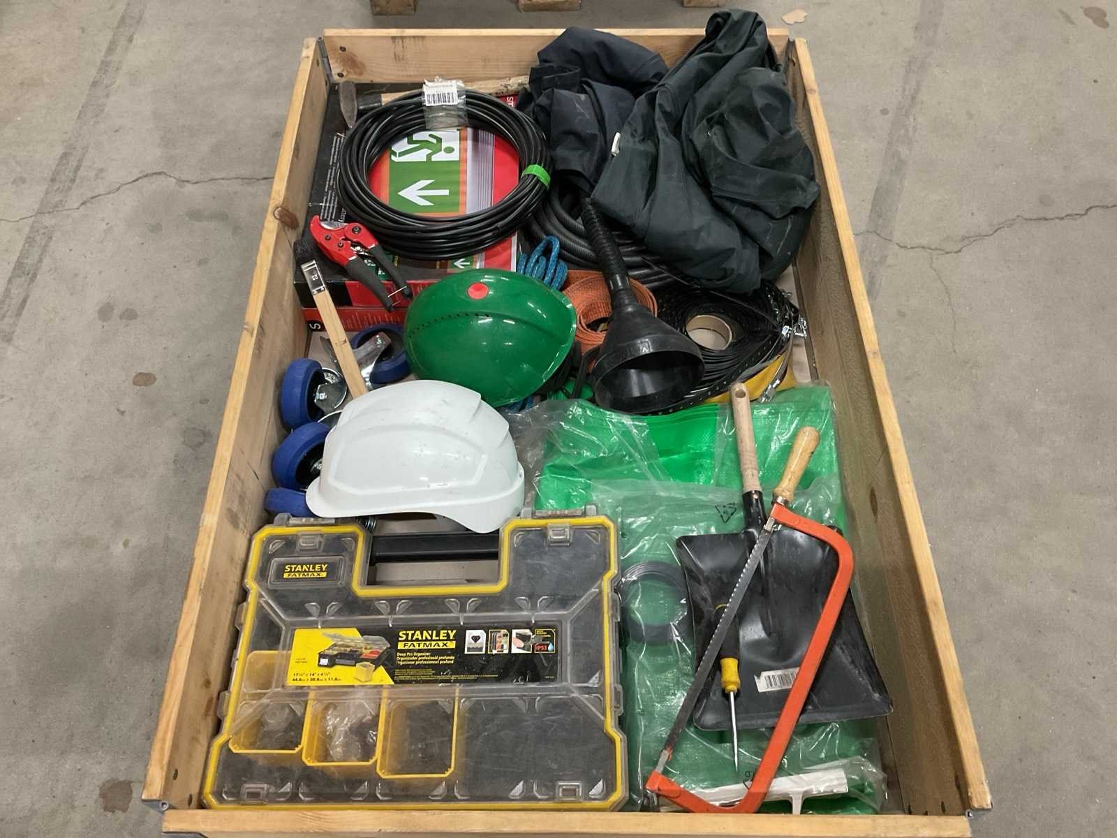 Bestaande uit: o.a. bouwhelmen, assortikoffer, zwenkwielen, dekzeilen, noodverlichting, handgereedschap, etc.