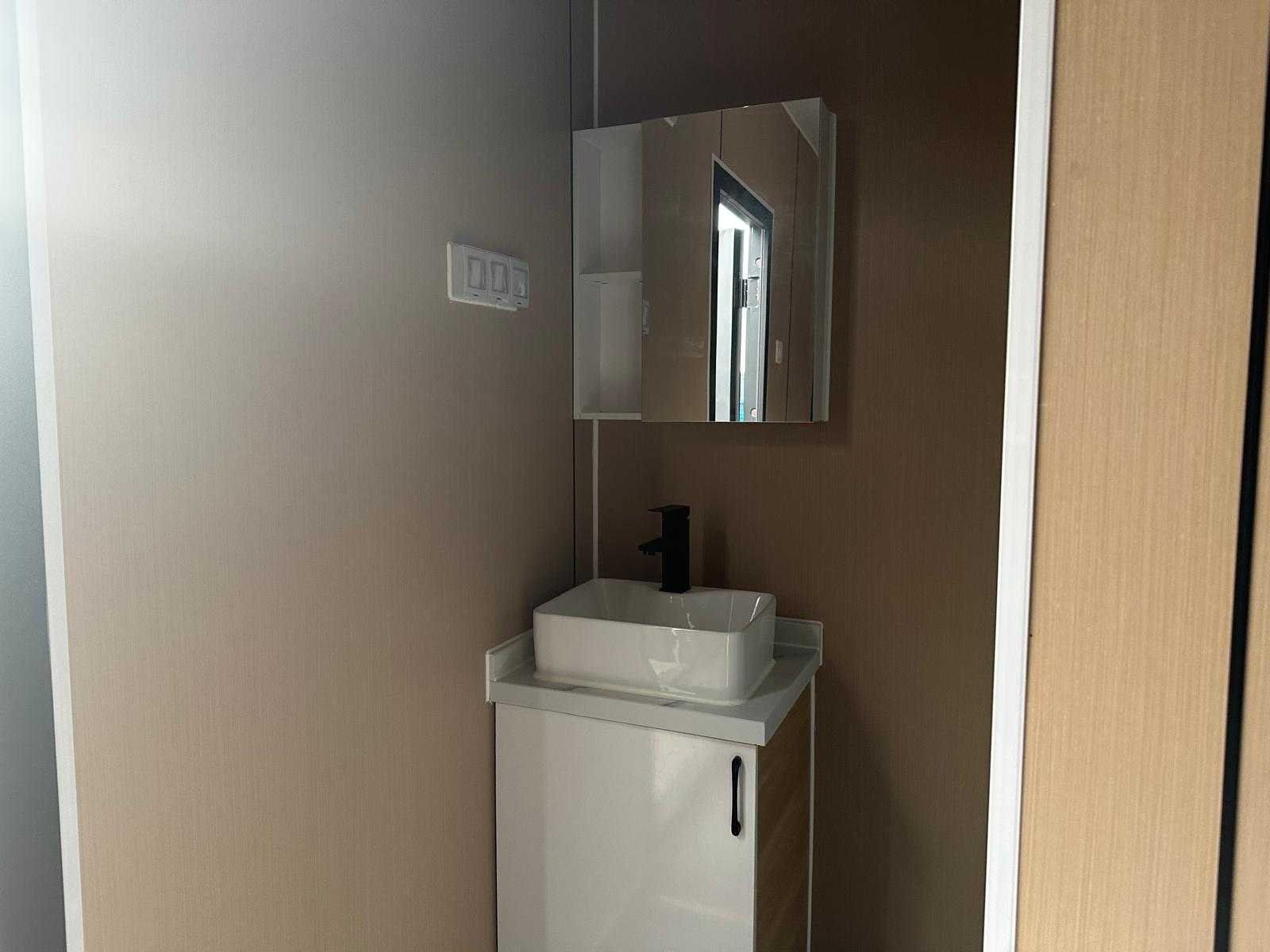 Voorzien van 1 woning; 1 badkamer; 1 toilet; 1 keuken blok; riool, water en stroom aansluiting allemaal voorbereid dus makkelijk aan te sluiten; meterkast; deur stopper; lepel gaten; gebruikt; Koper dient deze zelf op te laden met een kraanwagen; zonder kantine tafel en stoelen; Bouwjaar: 03-2024 Eigen gewicht: 3780kg