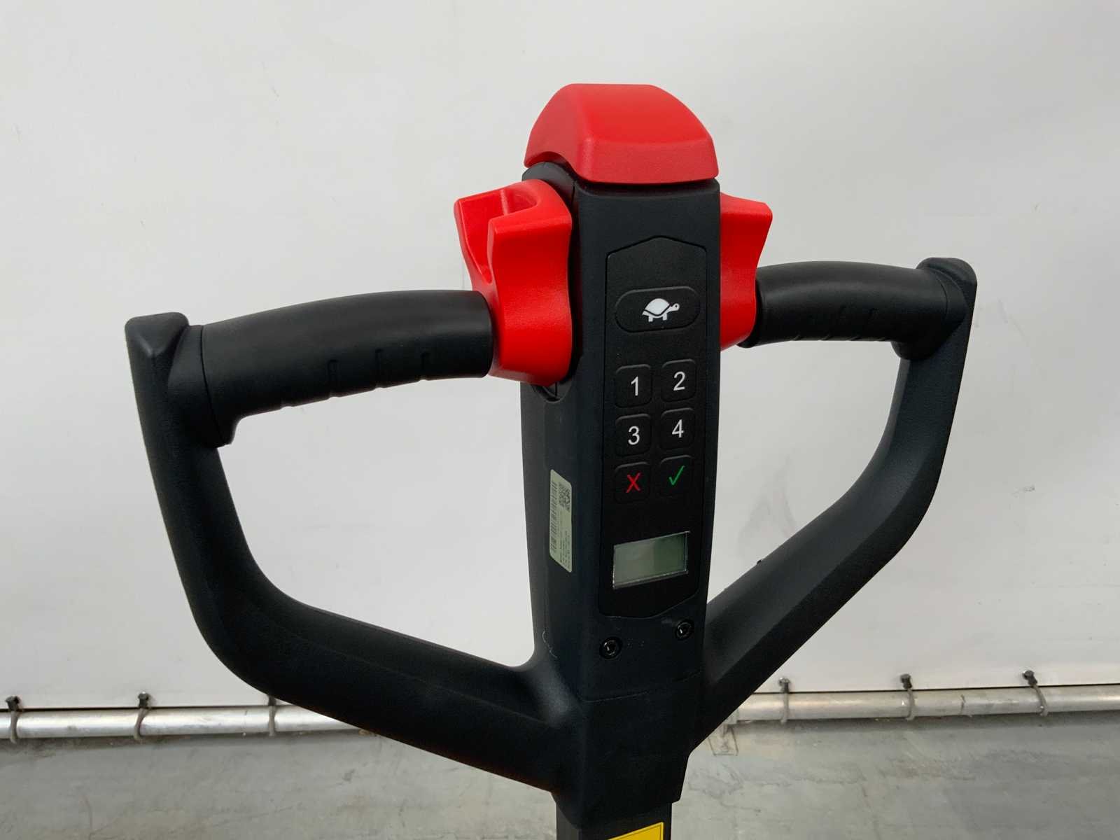 24v; accu 24v/20ah; dubbele wielen; 5747 Merk: Noblelift Type: EDGE PTE15N Bouwjaar: 2024 Hefvermogen: 1500kg Lepellengte: 1150mm Accu lader: true Afgelezen urenstand: 1 Eigen gewicht: 113kg Totale afmeting Breedte: 550mm Totale afmeting Hoogte: 1270mm