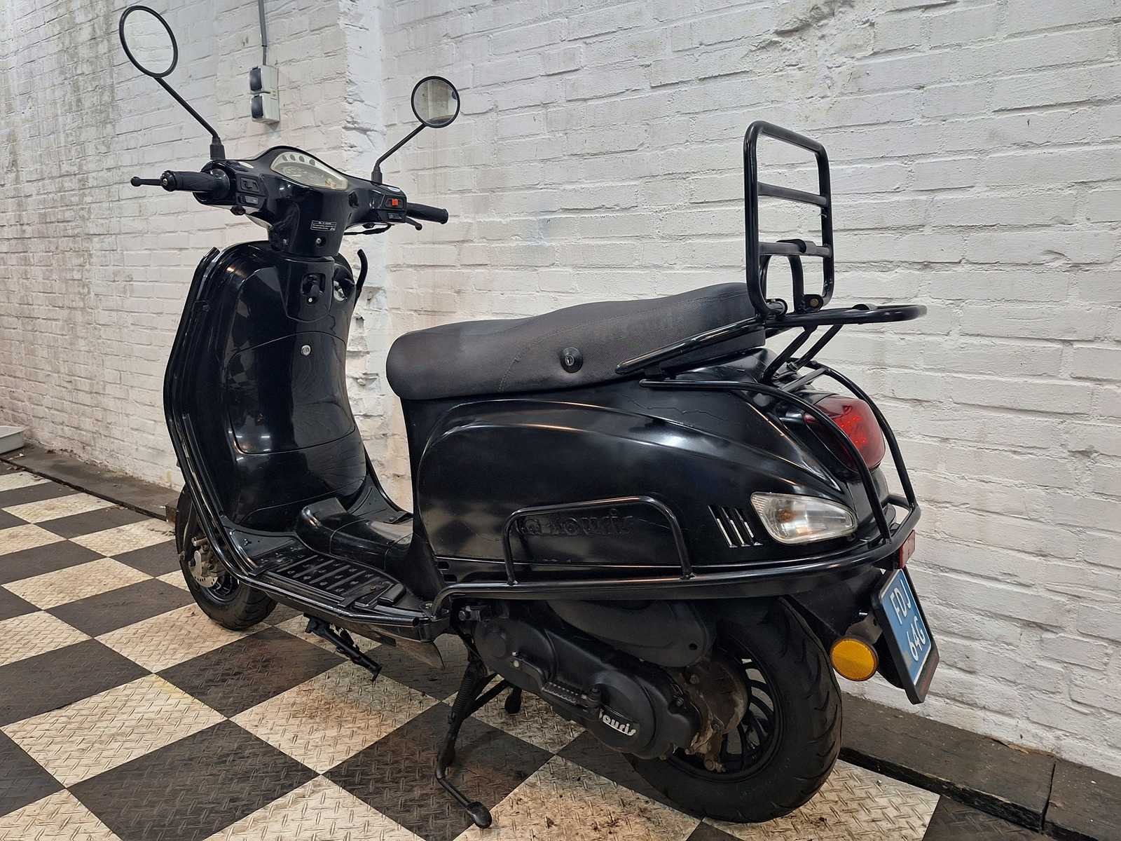 1 sleutel aanwezig voor scooter. Accessoire: beugelset. Merk: La Souris Model: 25 km snorscooter 4takt Type: Sourini Snelheid: 25km/h Kenteken: FDJ64G Datum eerste toelating: 24-09-2020 Bouwjaar: 2020 Kleur: zwart Afgelezen kilometerstand: 3142km