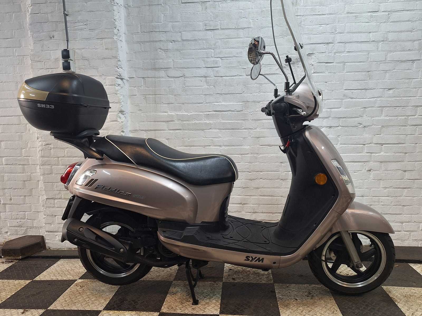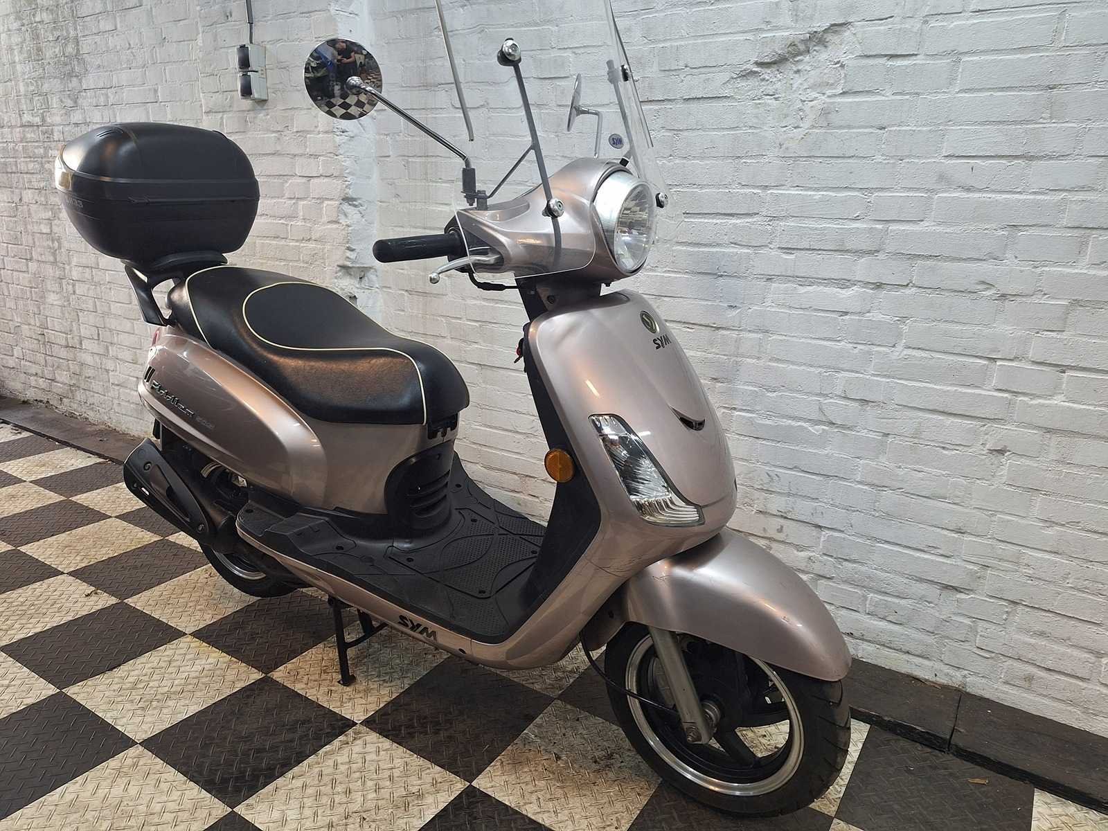 2 sleutels voor scooter en 2 sleutels voor topkoffer aanwezig. Accessoires: hoog windscherm en topkoffer. Merk: Sym Model: 25 km snorscooter 4takt Type: Fiddle 2 Snelheid: 25km/h Kenteken: DBV85P Datum eerste toelating: 14-08-2015 Bouwjaar: 2015 Kleur: grijs Afgelezen kilometerstand: 13541km
