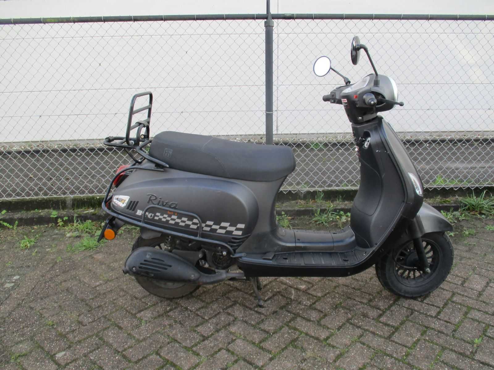 Bromscooter met 2 sleutels inclusief achterklaprek, achter zijbeugelset en dagrijverlichting. Motor loopt, voorvork kroonstuk ontzet, verdere staat van onderhoud onbekend. Merk: BTC Model: Bromscooter Type: Riva EFI Handelsbenaming: RIVA Snelheid: 45km/h Kenteken: DZJ-98-N Datum eerste toelating: 2020-05-04 Bouwjaar: 04-05-2020 Transmissie: automaat Brandstof: benzine Kleur: niet van toepassing Afgelezen kilometerstand: 3622km