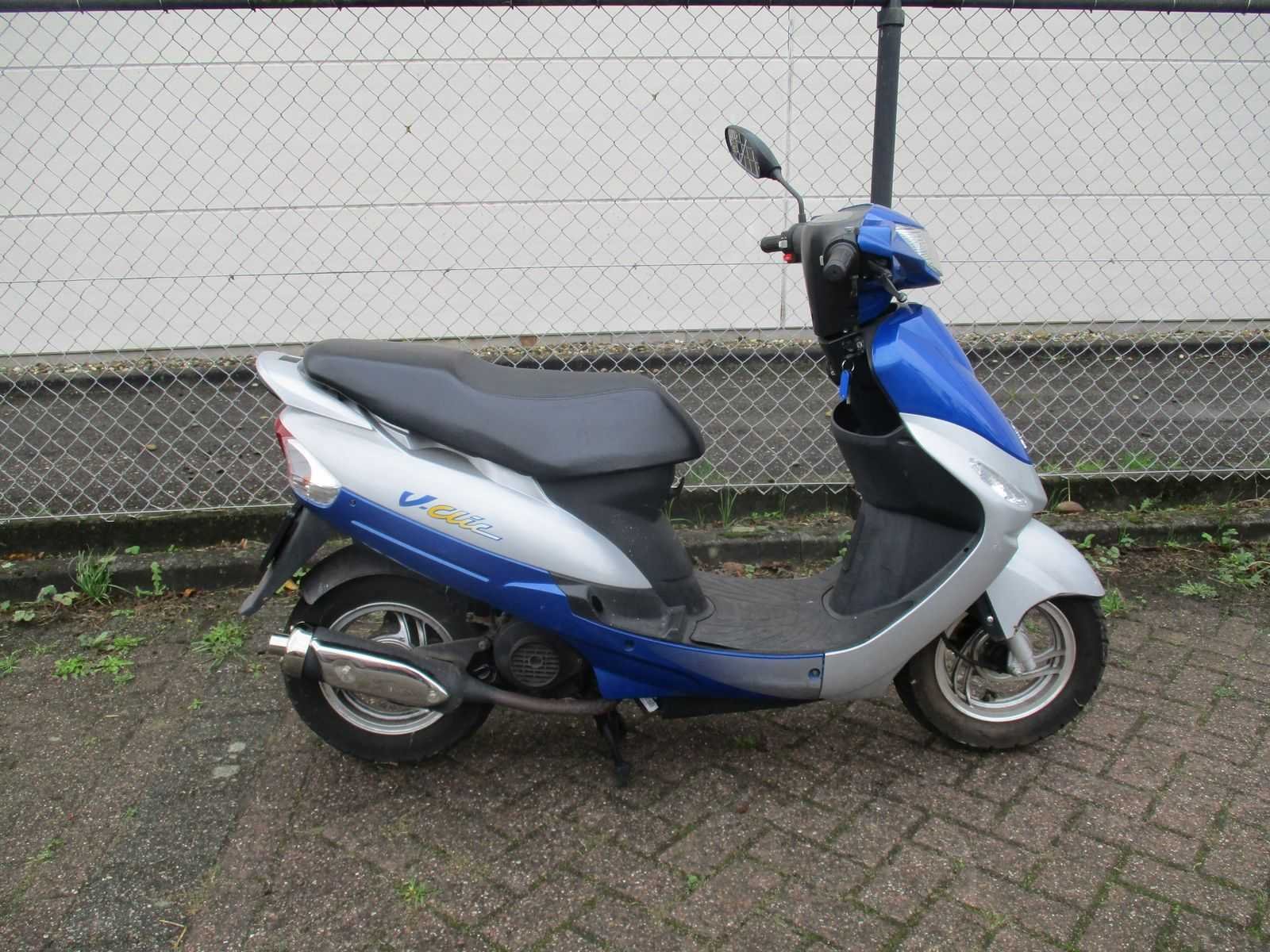 Snorscooter met 2 sleutels inclusief instructieboekje, scooter van overleden 1 ste eigenaar, motor loopt met behulp van accu hulp (accu zwak/defect). Dit voertuig heeft een kentekenregistratie, bij afhalen dient u dit ter plaatse of bij een derde partij te naam te stellen of exporteren, hier zijn extra kosten aan verbonden. zie veilinginformatie kavel 1-299 Merk: Peugeot Model: Snorscooter Type: V-Click Handelsbenaming: FB50QT-6A Snelheid: 25km/h Kenteken: FS-416-L Datum eerste toelating: 2008-06-16 Transmissie: 16-06-2008 Brandstof: benzine Kleur: niet van toepassing Afgelezen kilometerstand: 6594km