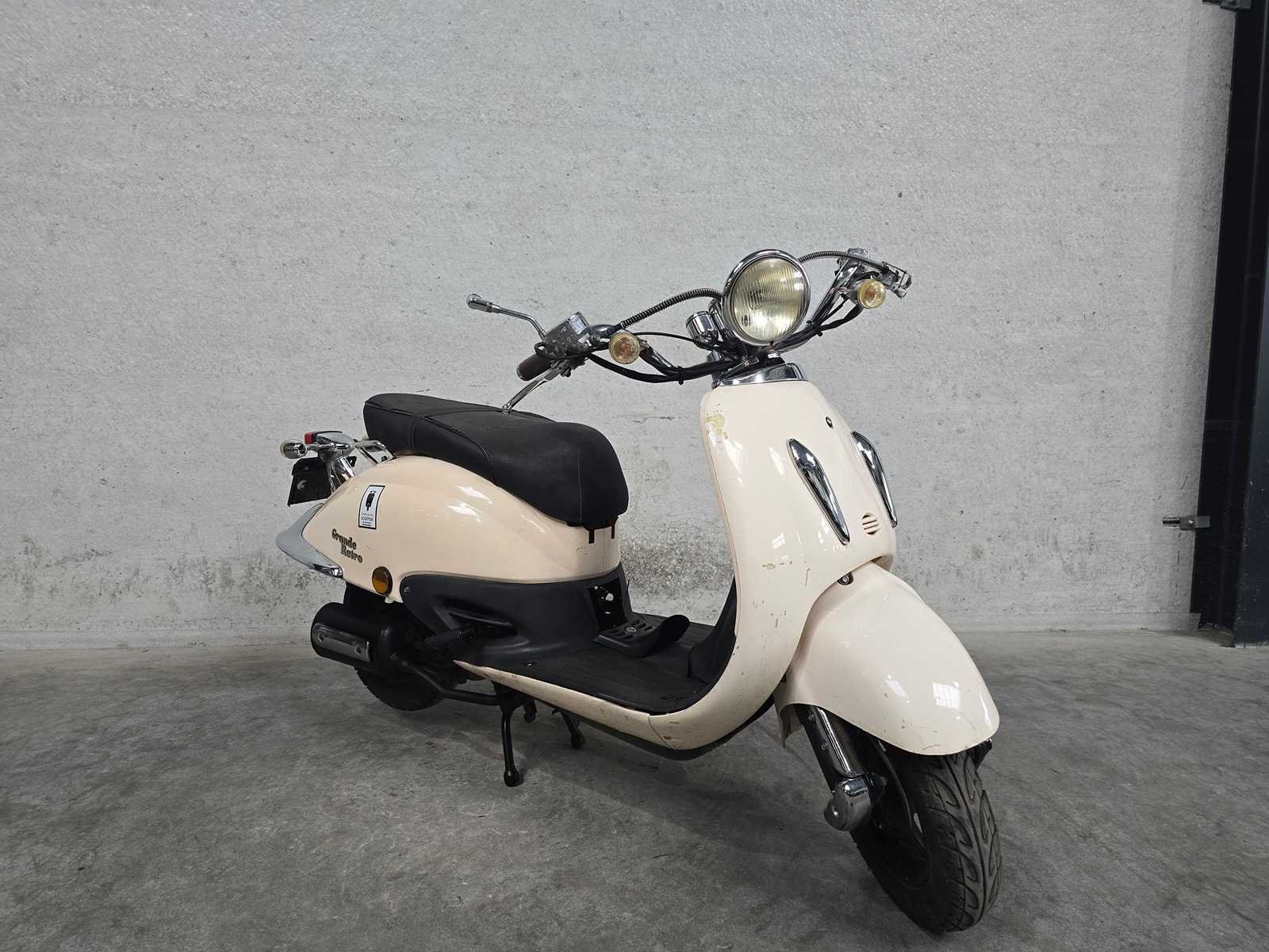 Geen sleutels - technische / onderhoud staat onbekend - Merk: BTC Model: Snorscooter Type: Grande Retro Handelsbenaming: OLD VERSION Kenteken: DGJ70R Datum eerste toelating: 2016-09-06 Bouwjaar: 2016 Transmissie: automaat Brandstof: benzine Kleur: creme