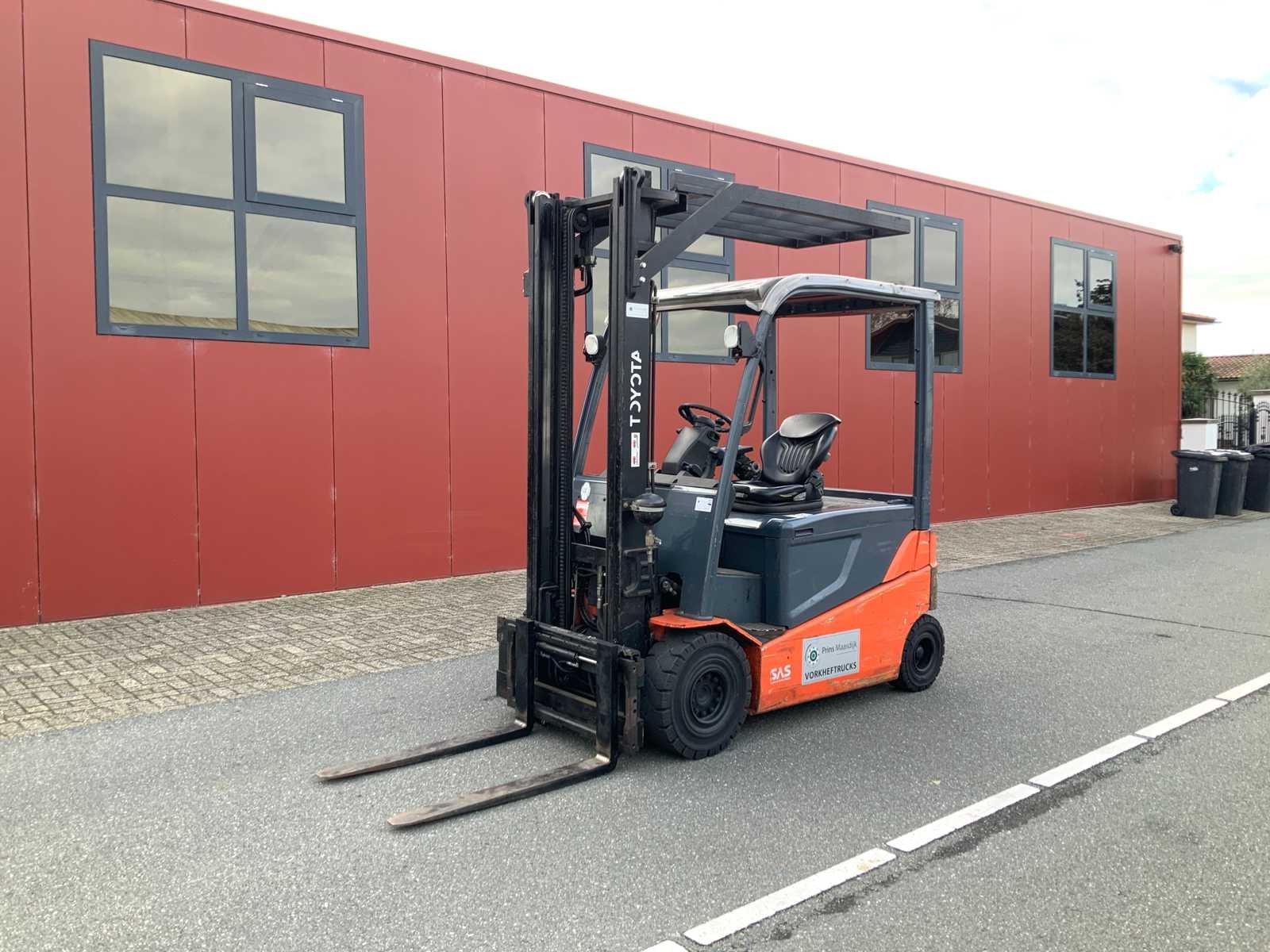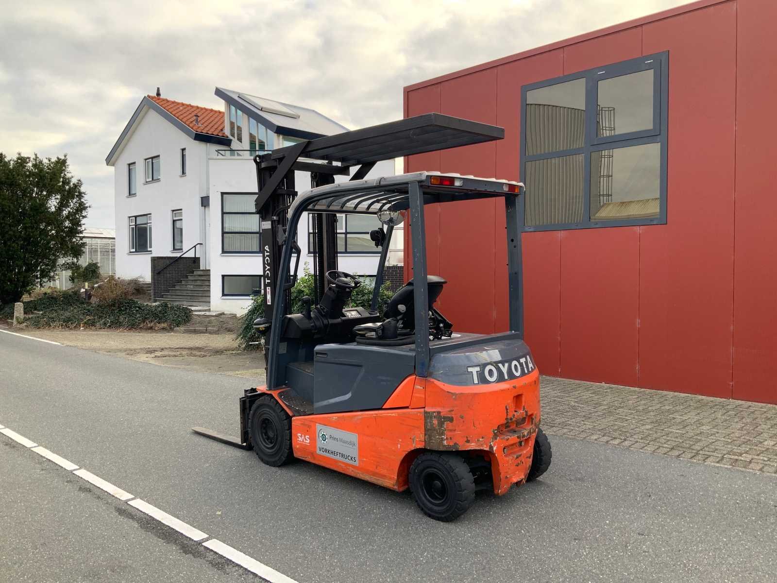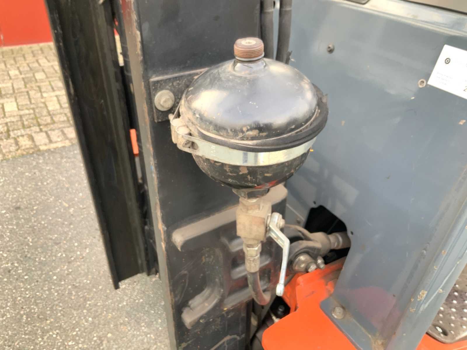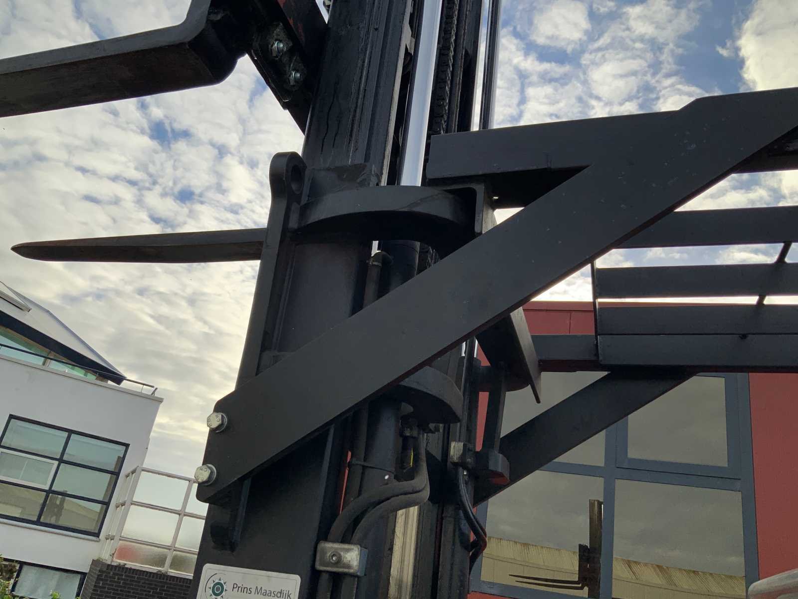 Uitgevoerd met accumulator voor schok dempende werking van het te tillen gewicht, twee werklampen voor en met Autofill systeem, zonder acculader. Heftruck heeft dienst gedaan bij pallethandel en daarvoor extra valbeveiliging rek op dak deze is eenvoudig te demonteren. Merk: Toyota Type: 8FBMT25 Bouwjaar: 2013 Serienummer: 8FBMT25-10050 Brandstof: Elektrisch Mast: Duplex Soort band: Volrubber banden Aantal wielen: 4 Afgelezen urenstand: 2567 Side-shift: true Duplex mast: true Eigen gewicht: 5103kg Hefvermogen: 2500kg Lepellengte: 1000mm Max. hefhoogte: 3700mm Vol rubber banden: true Minimale doorrijhoogte: 2620mm Totale afmeting L: 3500mm Totale afmeting Breedte: 1200mm Totale afmeting Hoogte: 2620mm