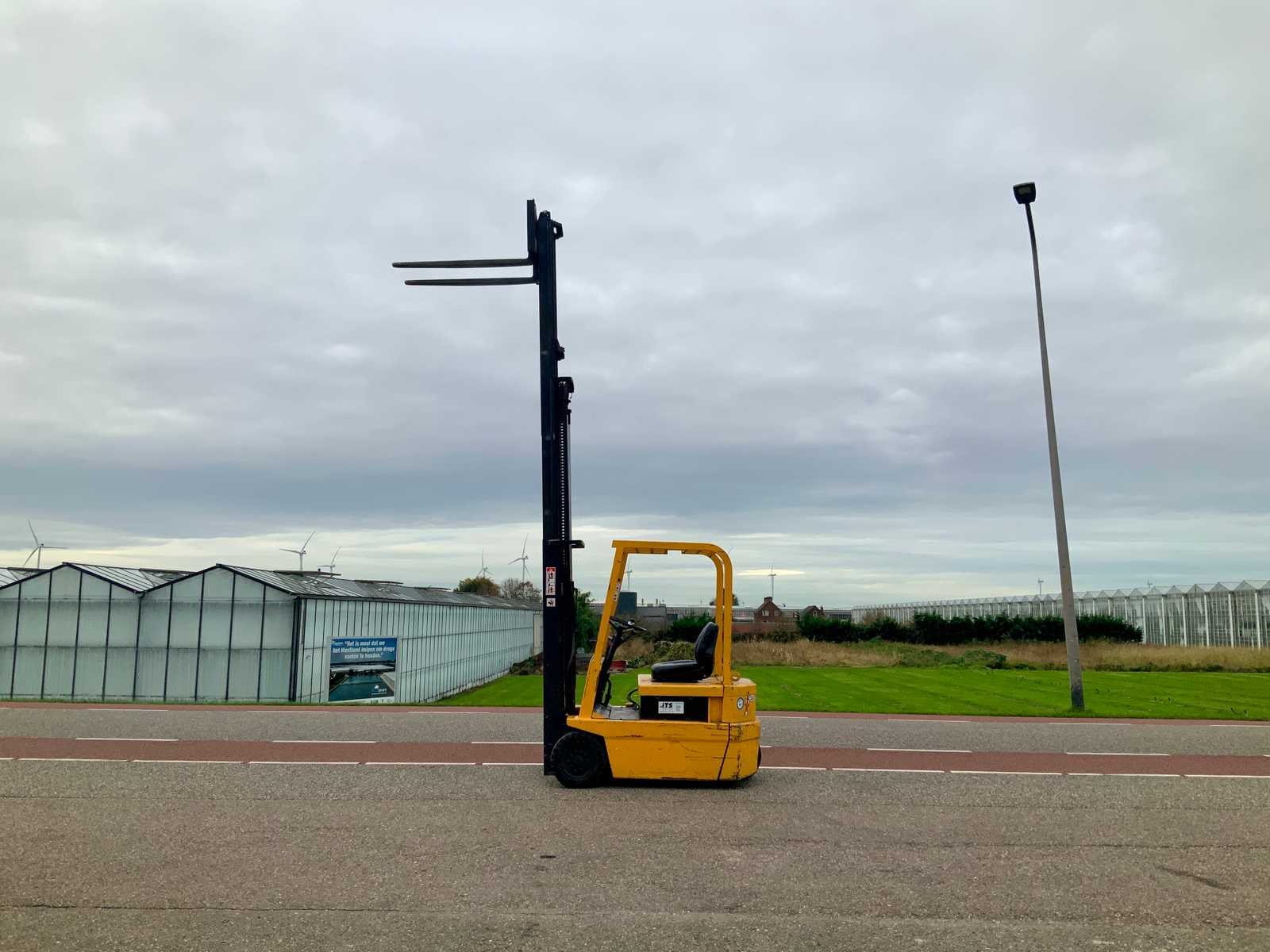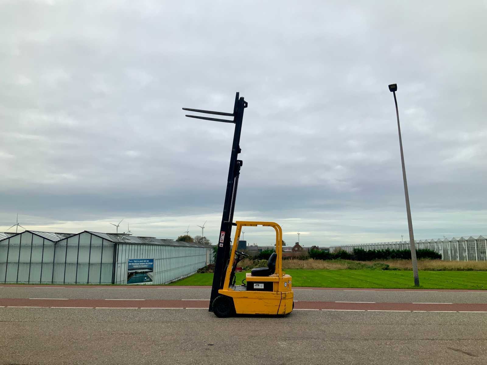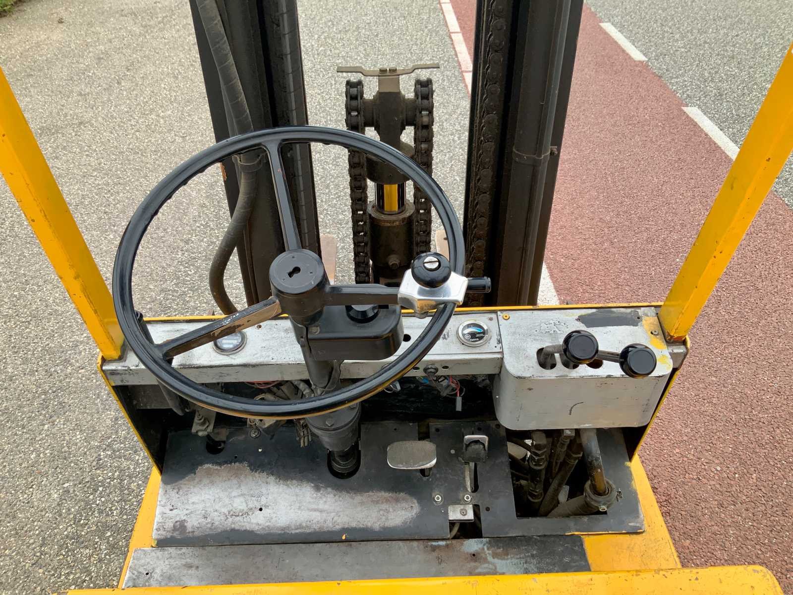 Met acculader, wendbare goed werkende machine. Merk: Nyk Type: FBT15PN Serienummer: 21610059 Brandstof: Elektrisch Mast: Triple Soort band: Volrubber banden Aantal wielen: 3 Afgelezen urenstand: 5723 Accu lader: true Free-lift: true Triple mast: true Hefvermogen: 1100kg Lepellengte: 1150mm Max. hefhoogte: 4300mm Hefhoogte: 4300mm Vol rubber banden: true Minimale doorrijhoogte: 1950mm Totale afmeting L: 3000mm Totale afmeting Breedte: 1070mm Totale afmeting Hoogte: 1950mm