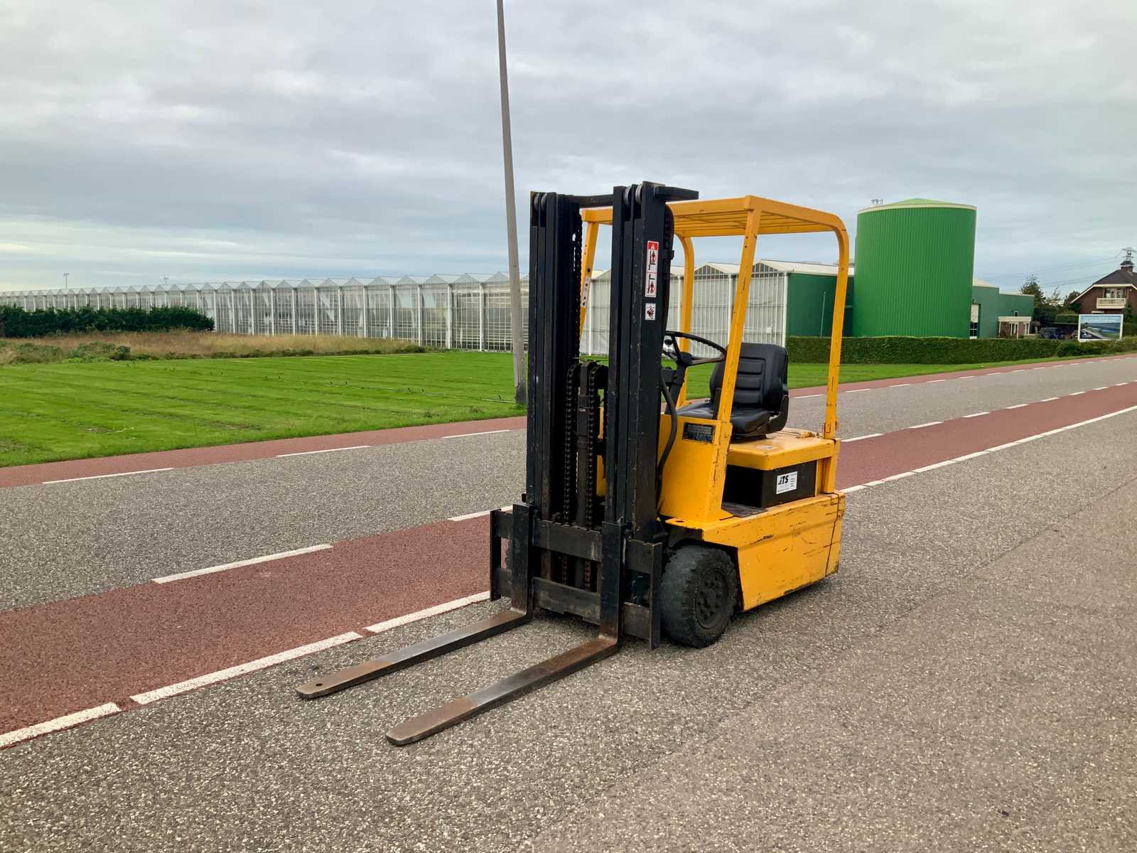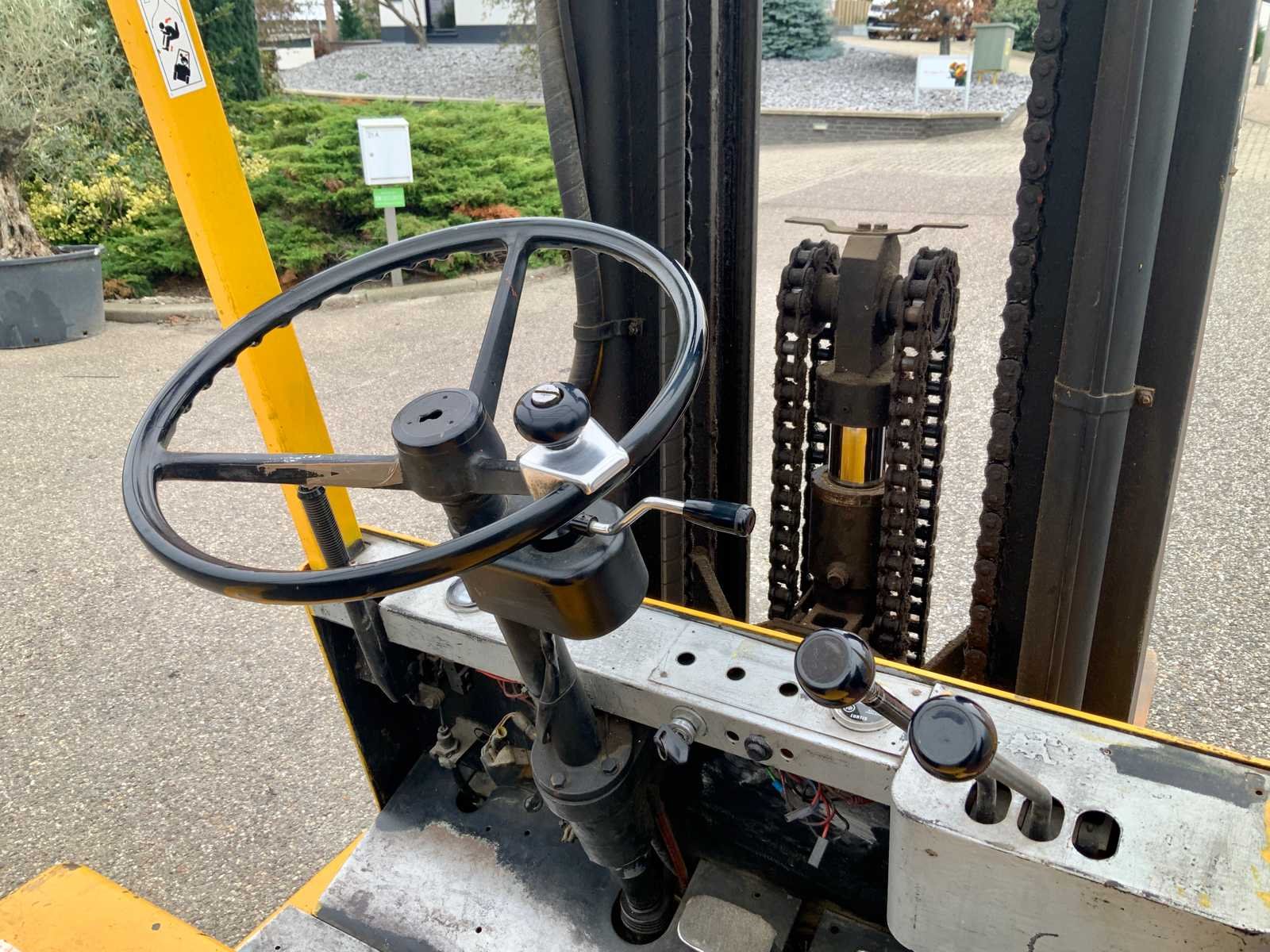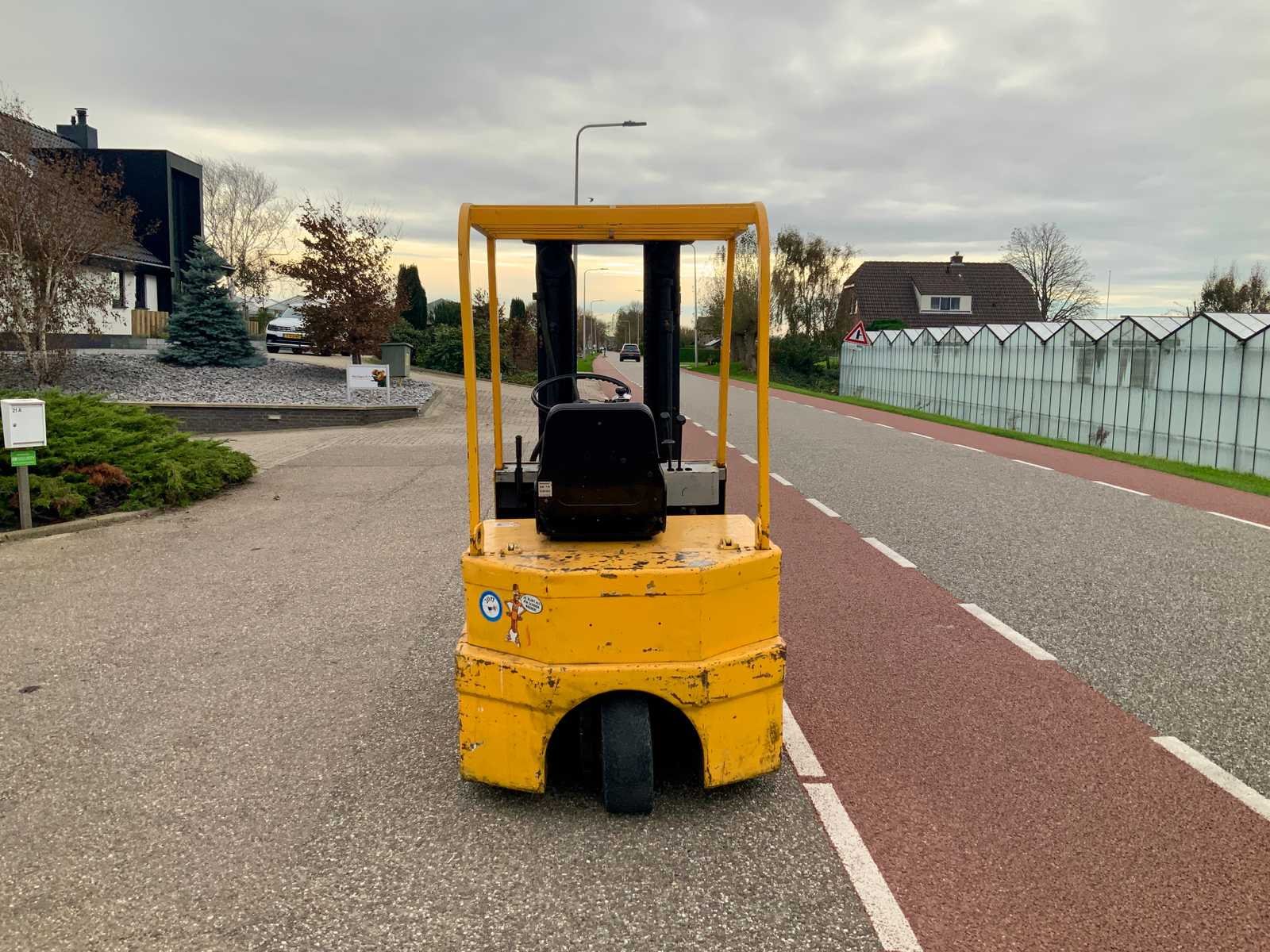 Met acculader, wendbare goed werkende machine. Merk: Nyk Type: FBT15PN Serienummer: 21610059 Brandstof: Elektrisch Mast: Triple Soort band: Volrubber banden Aantal wielen: 3 Afgelezen urenstand: 5723 Accu lader: true Free-lift: true Triple mast: true Hefvermogen: 1100kg Lepellengte: 1150mm Max. hefhoogte: 4300mm Hefhoogte: 4300mm Vol rubber banden: true Minimale doorrijhoogte: 1950mm Totale afmeting L: 3000mm Totale afmeting Breedte: 1070mm Totale afmeting Hoogte: 1950mm