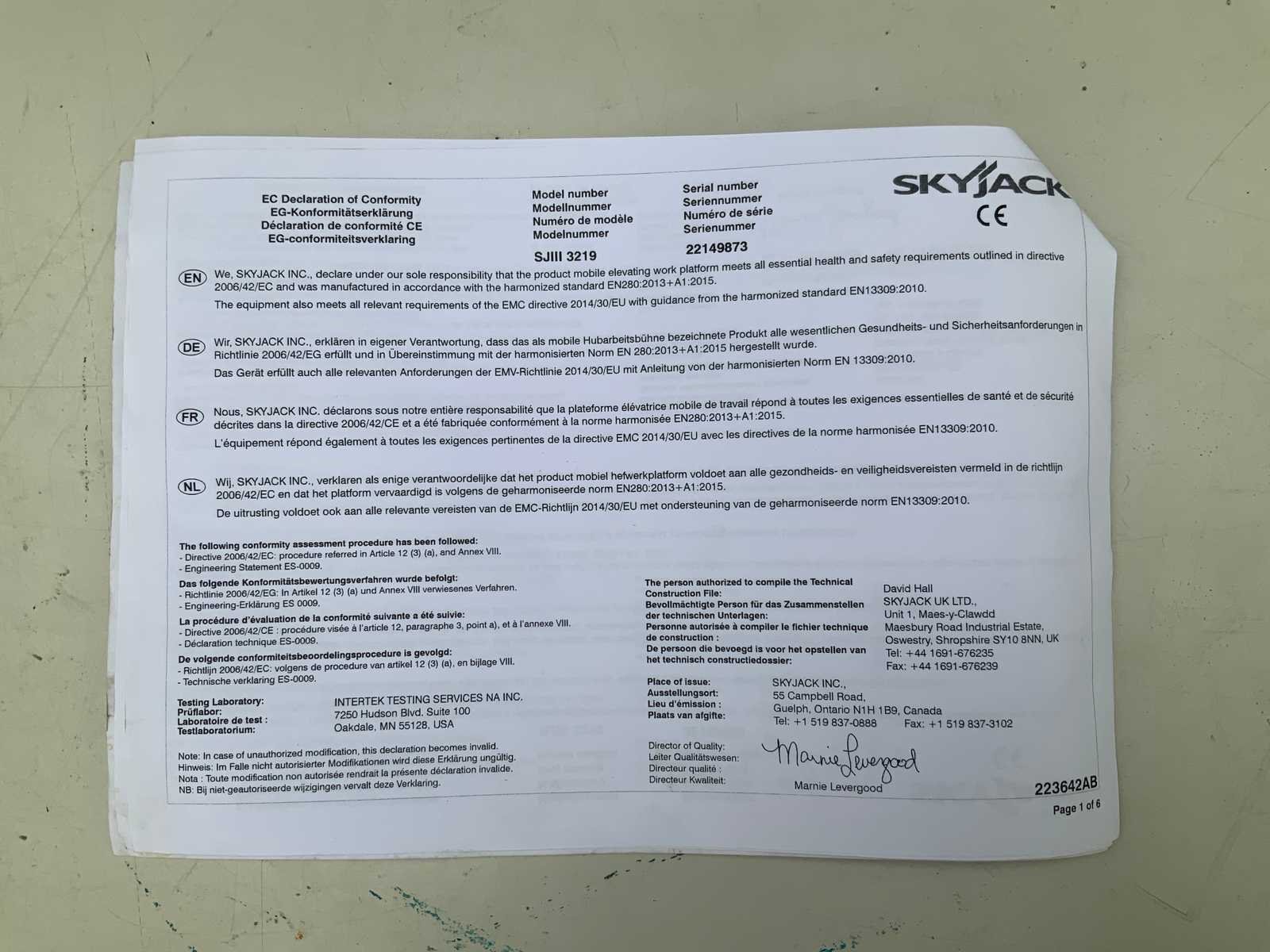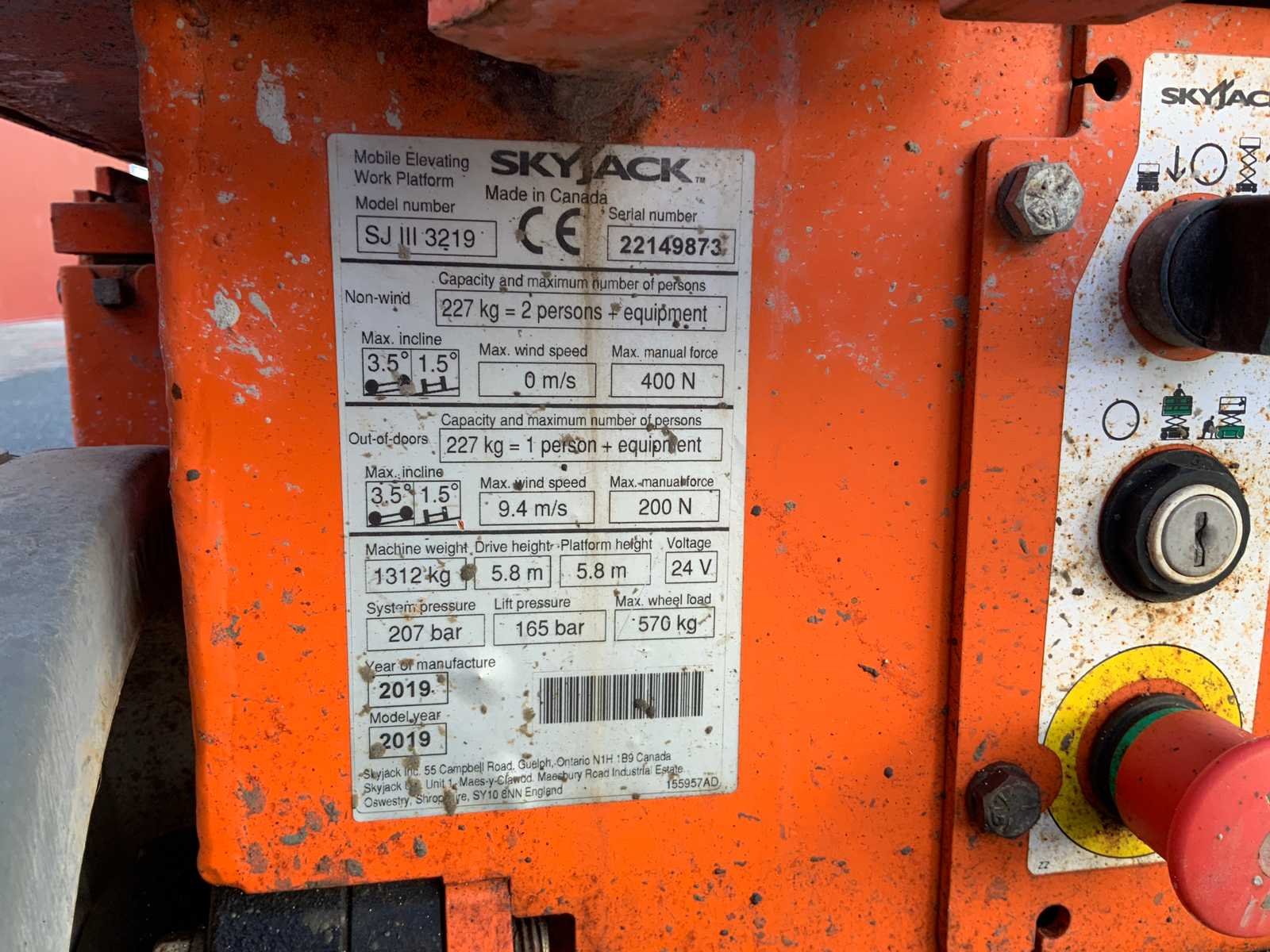 Uitgevoerd met non marking banden, met declaration of conformity, stopcontact op het platform, niet kunnen testen afstandsbediening ontbreekt. Merk: Sky Jack Type: SJIII3219 Bouwjaar: 2019 Serienummer: 22149873 Elektrisch: true Schaarhoogwerker: true Werkhoogte: 7800mm Plateau afm. l: 2500mm Plateau afm. b: 800mm Platform capaciteit: 227kg Accu lader: true Afgelezen urenstand: 170 Eigen gewicht: 1312kg Totale afmeting L: 1800mm Totale afmeting Breedte: 800mm Totale afmeting Hoogte: 2100mm