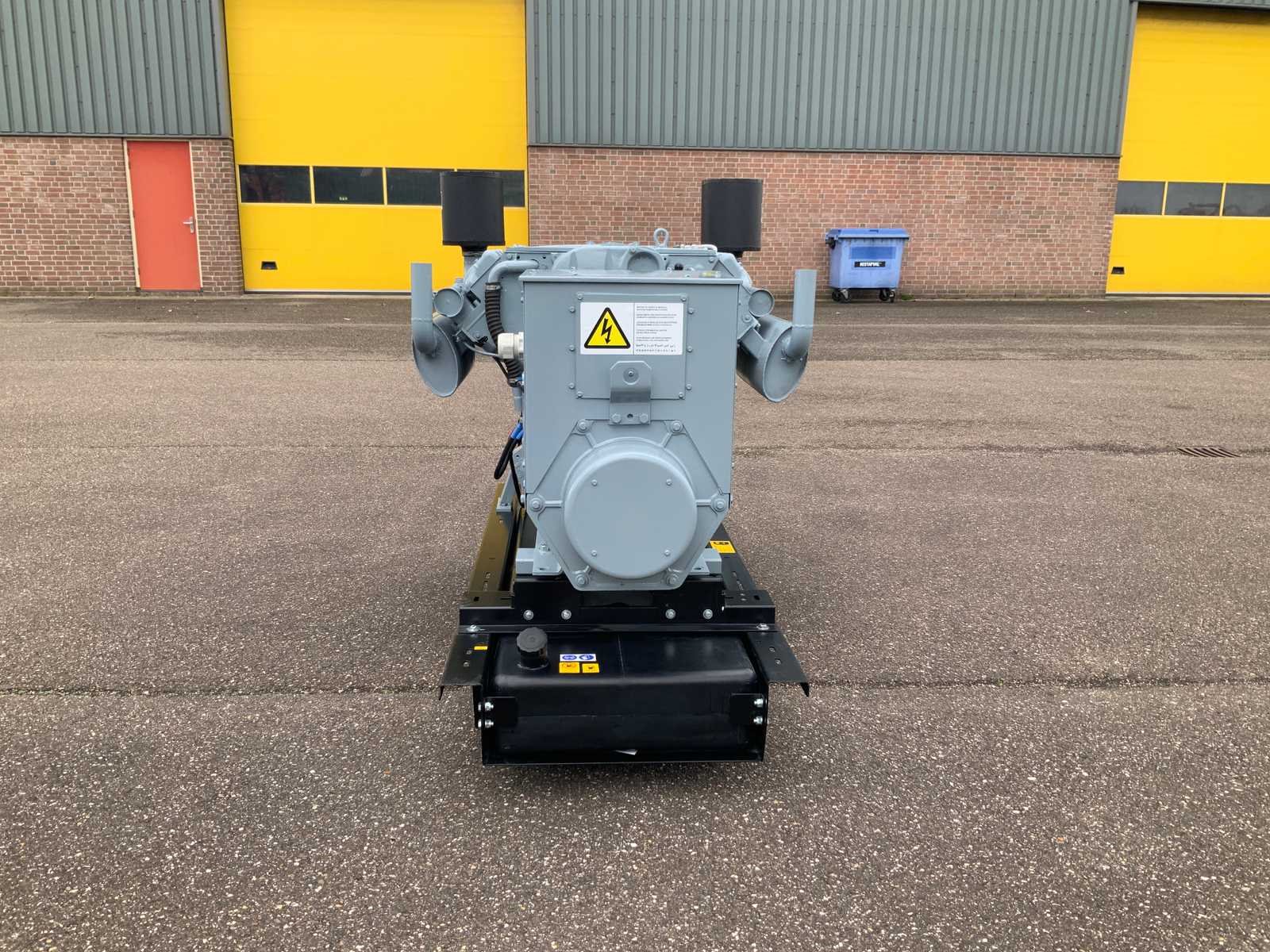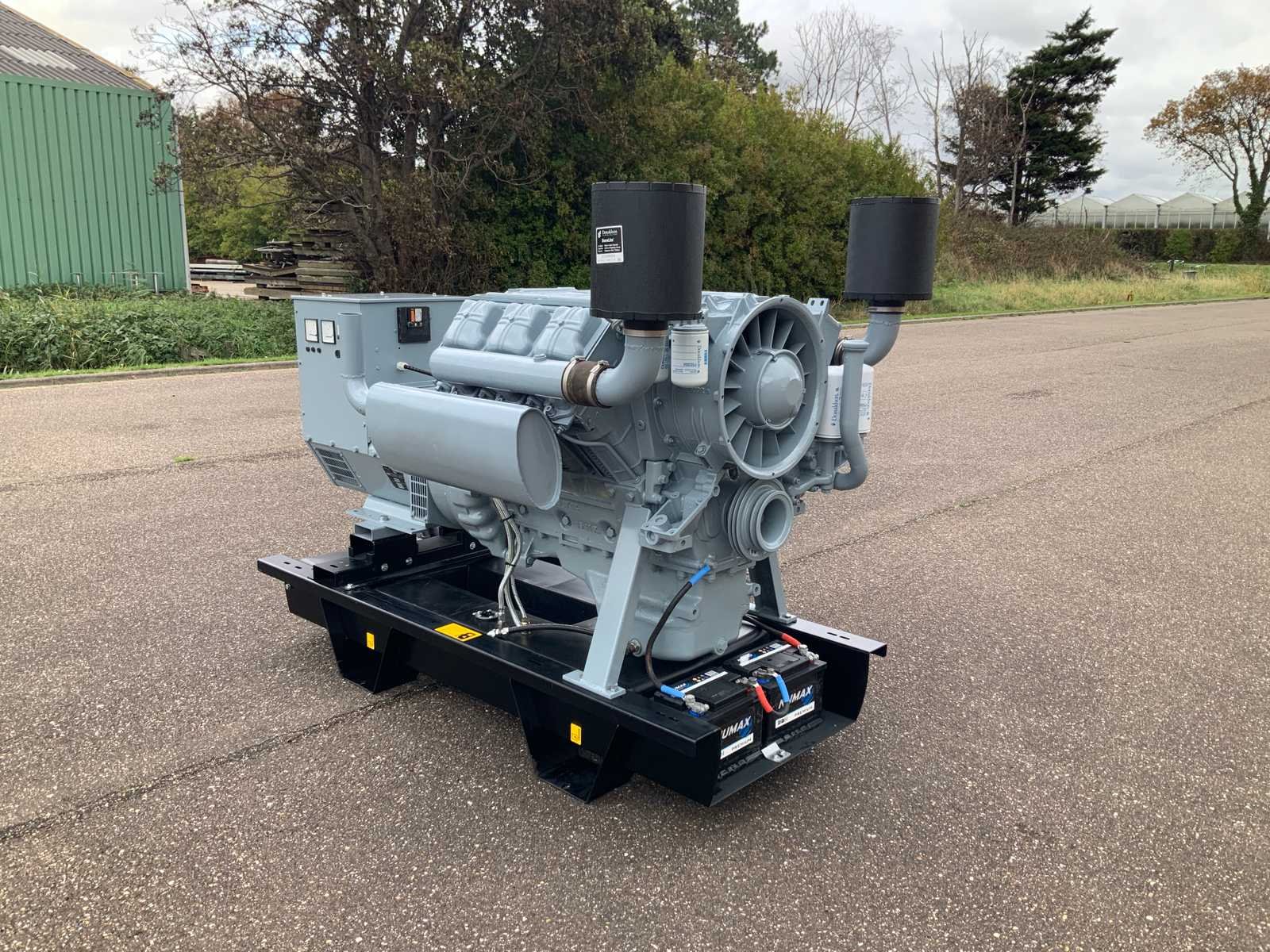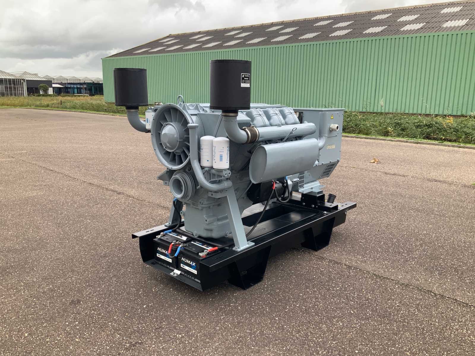 Generator is gebouwd op tankfundatie met een inhoud van 140 liter, elektrisch gestart 24 V met twee nieuwe accu’s, capaciteit 85 KVA bij 1500 r.p.m. spanning 230/400 V set is belast getest en verkeerd in uitstekende staat. Merk: Deutz/Stamford Type: F6L413V Serienummer: 1641811 Capaciteit.: 85kVA Aansluiting: 400V Motor merk: Deutz Generator merk: Stamford Generator type: UCI224G2 Totale afmeting L: 2000mm Totale afmeting Breedte: 1150mm Totale afmeting Hoogte: 1420mm