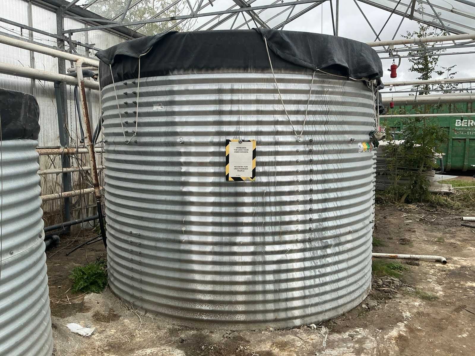 Bestaande stalen silo platen; vilt; zeilen zak; afdek doek; RVS ratels; bouten en moeren; wordt gedemonteerd door verkoper Merk: Buwatec Totale afmeting Breedte: 2730mm Totale afmeting Hoogte: 2360mm