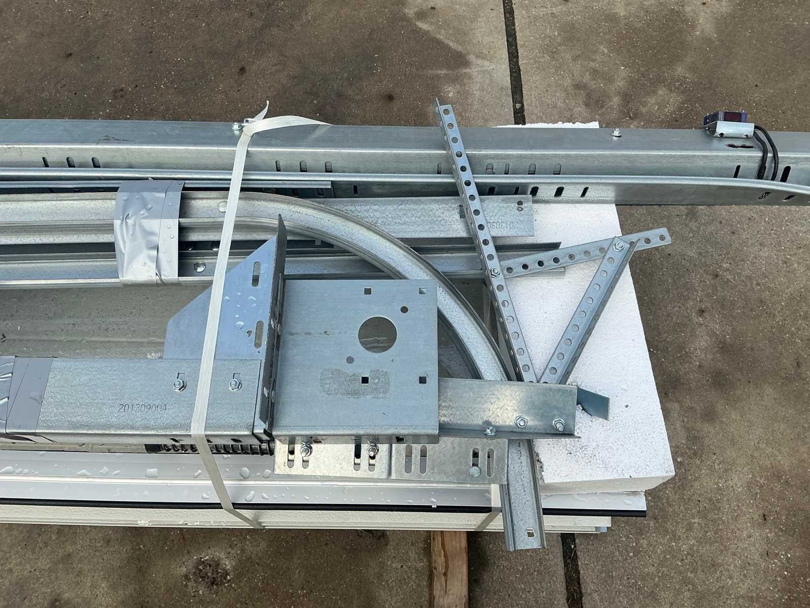 Bestaande uit deurpanelen; railsen; stop veren; 1 sectie van de deur is doorkijk; met sensoren; Binnendeur: true Buitendeur: true Afmeting h: 3180mm Afmeting b: 3050mm