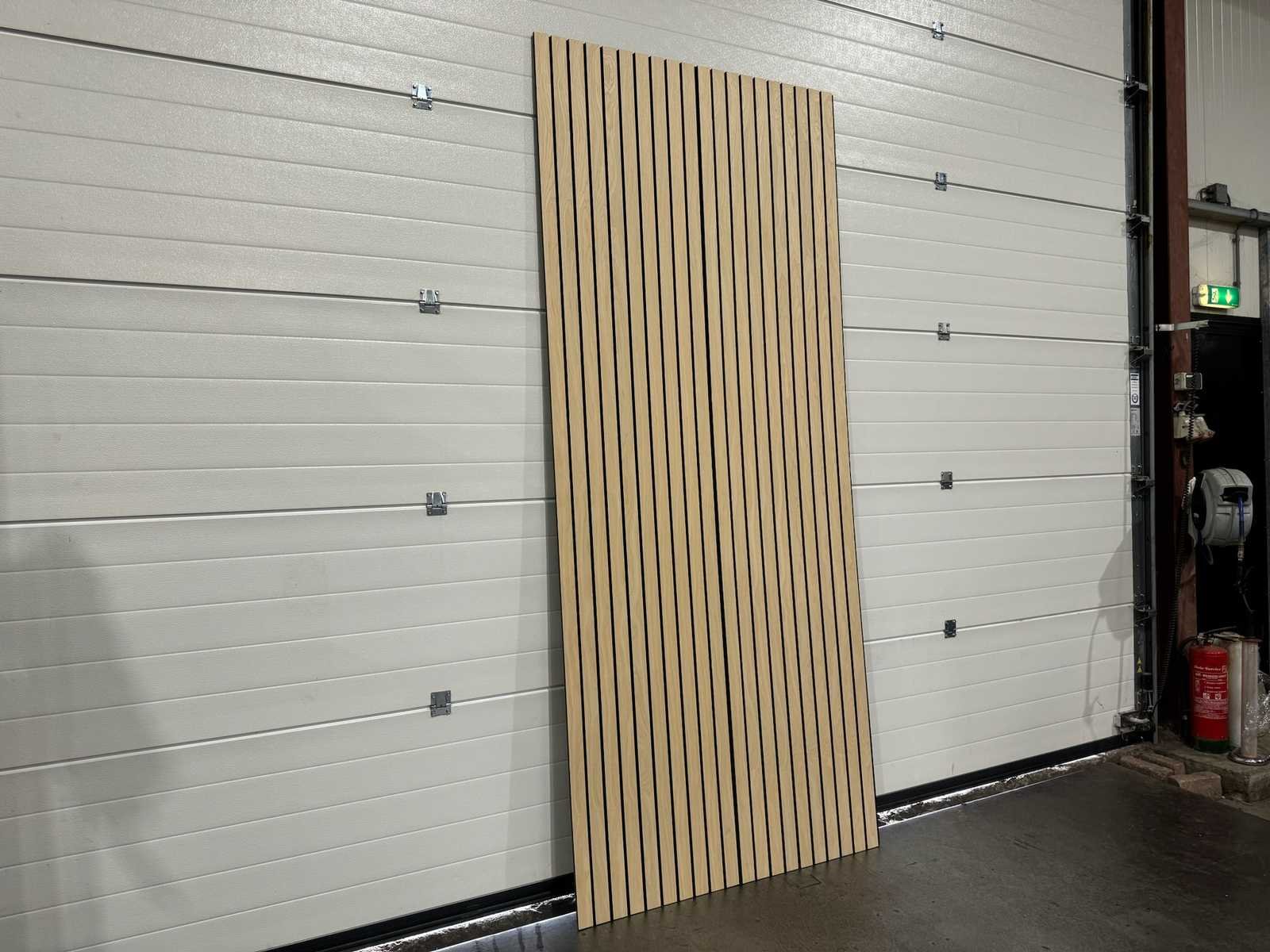 Ongebruikt; brede planken van 50mm breed; tussenruimte tussen de latten is 10mm Kleur: Oak Lengte: 280cm Breedte: 60
