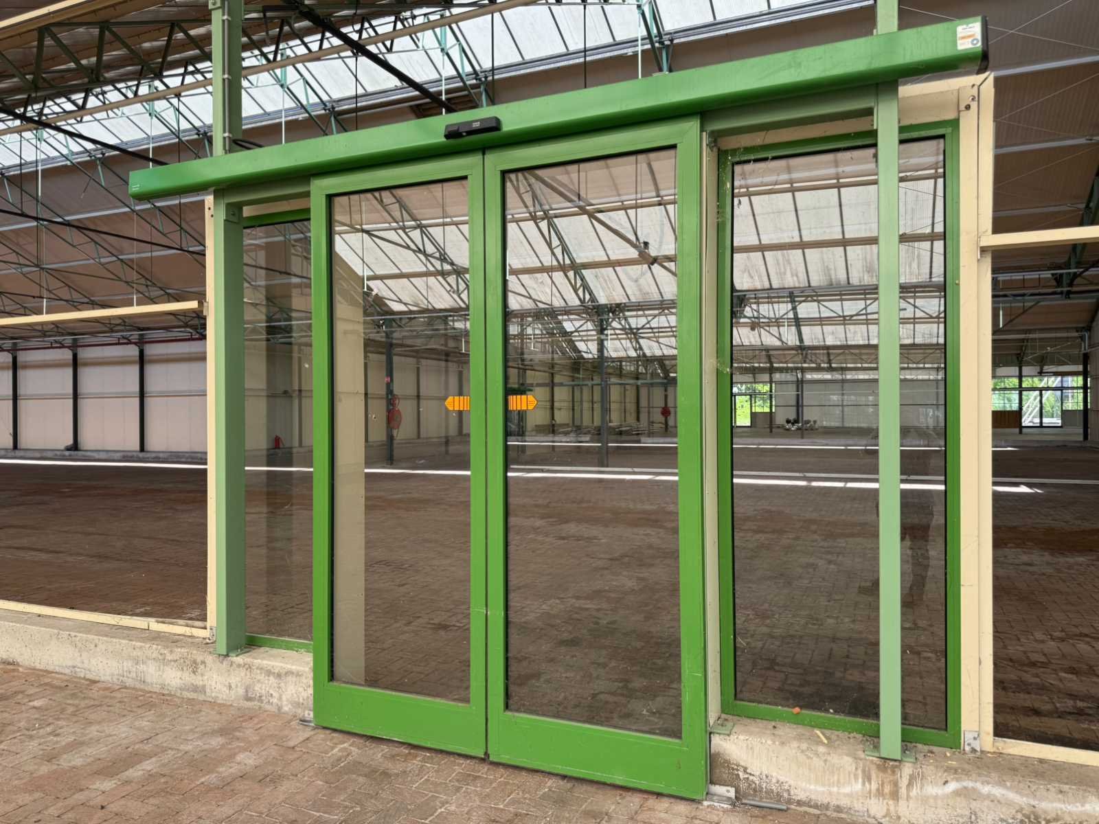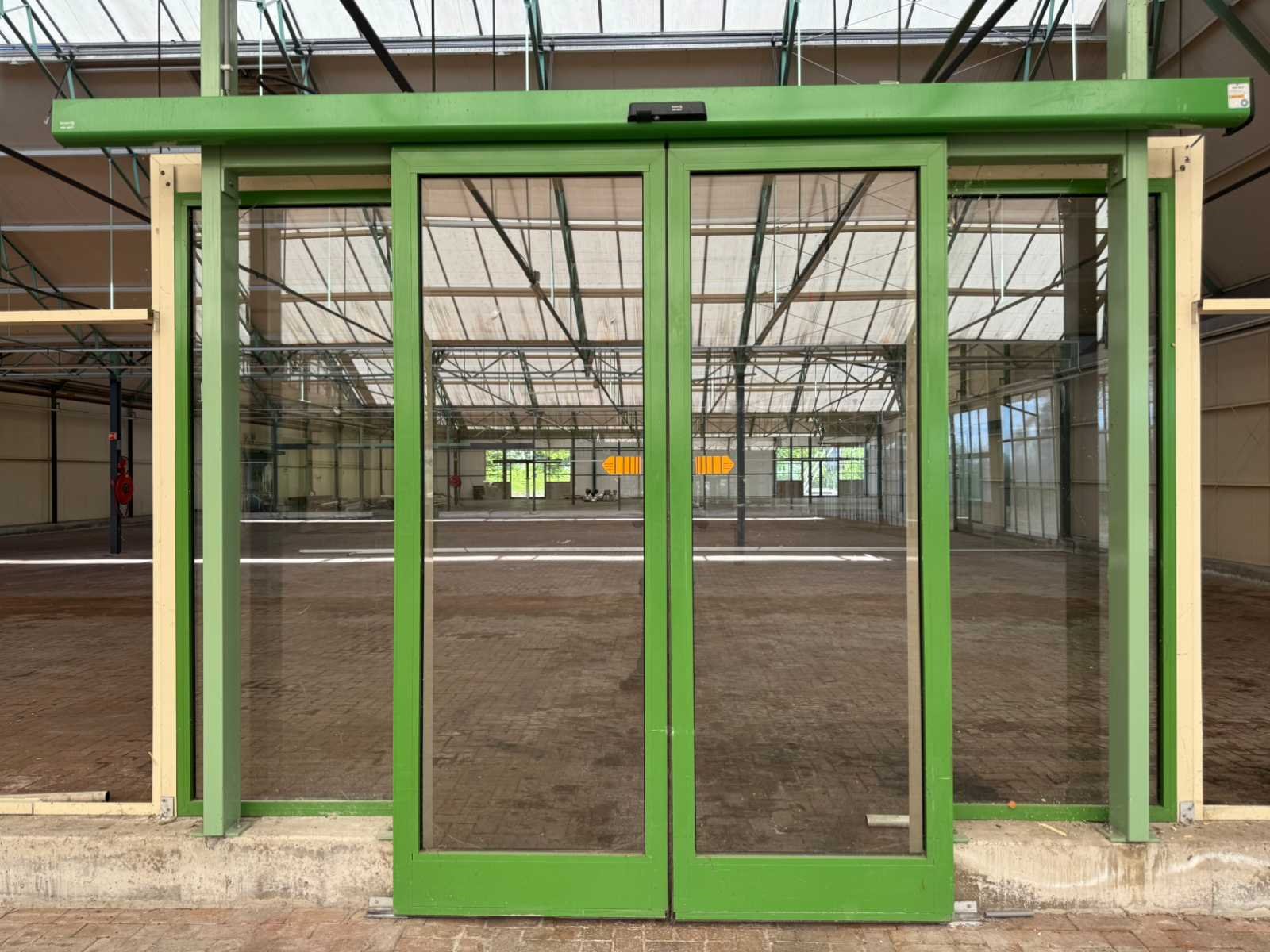 2 deur delen van 940 mm breed; deuren met gehard veiligheidsglas; met rails; aandrijfmotor; afdek kap; wordt vakkundig gedemonteerd door verkoper; kenmerk deur is 1515 Binnendeur: true Buitendeur: true Beglaasd: true Afmeting h: 2640mm Afmeting b: 1880mm Aluminium: true Glas: true