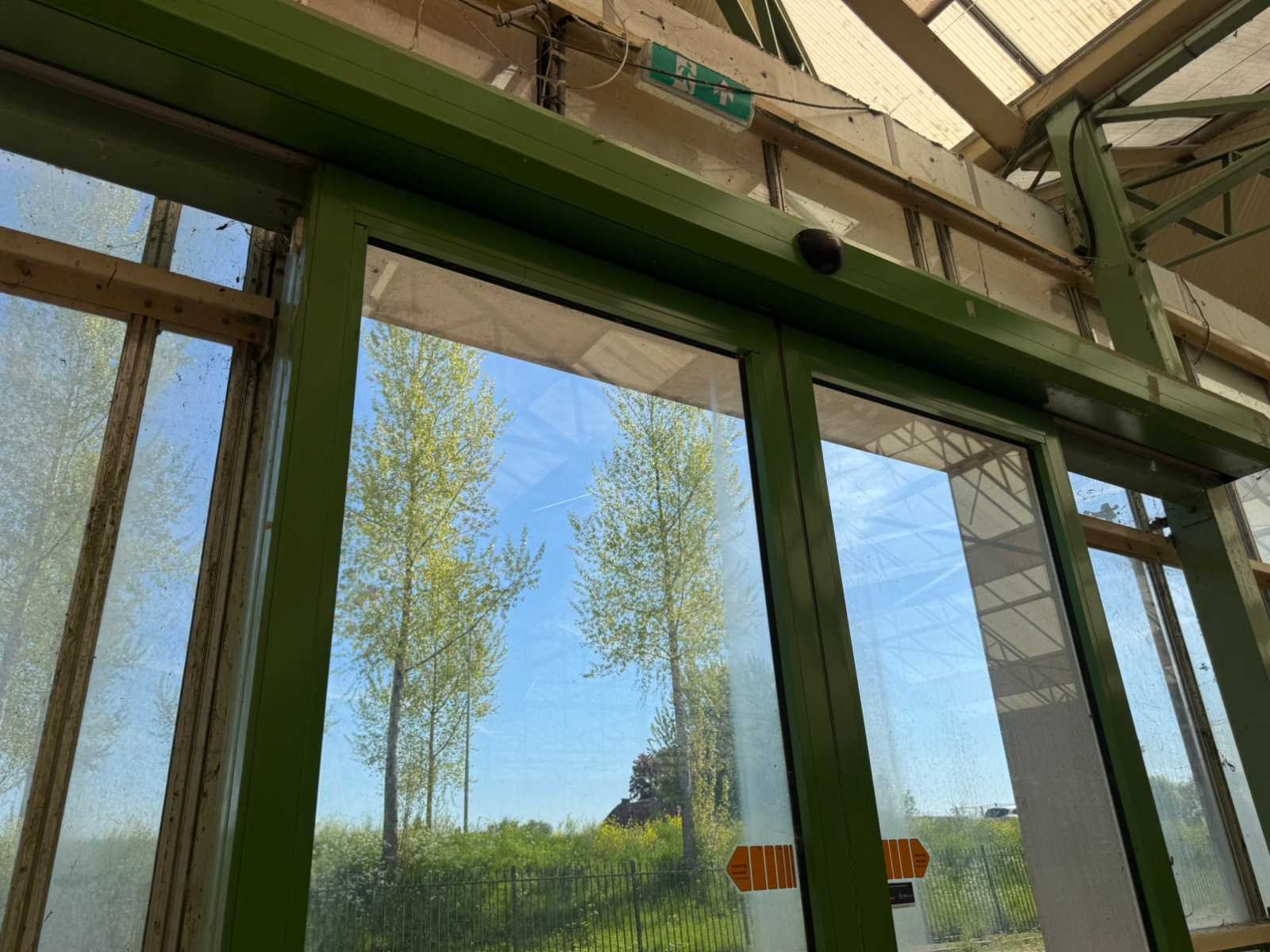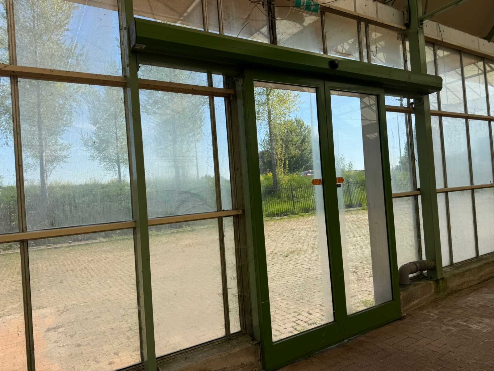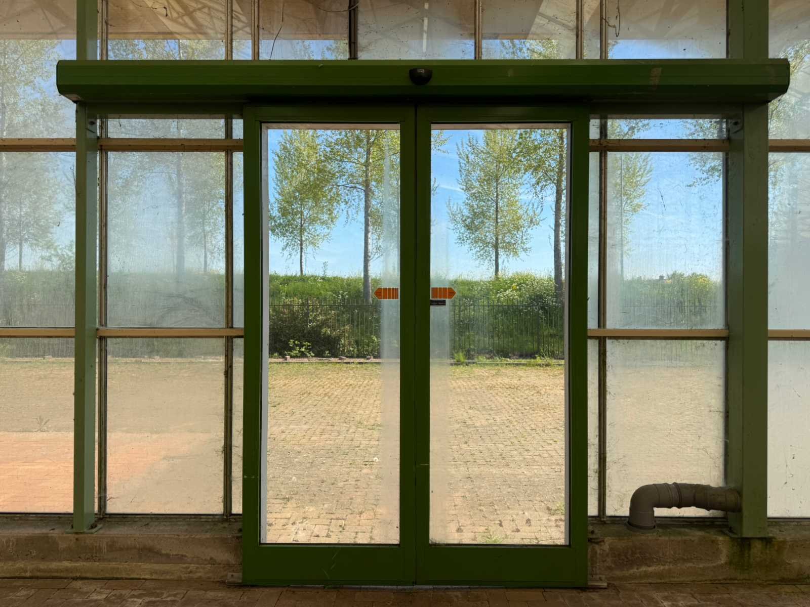 2 deur delen van 940 mm breed; deuren met gehard veiligheidsglas; met rails; aandrijfmotor; afdek kap; wordt vakkundig gedemonteerd door verkoper; kenmerk deur is 003 Binnendeur: true Buitendeur: true Beglaasd: true Afmeting h: 2640mm Afmeting b: 1880mm Aluminium: true Glas: true