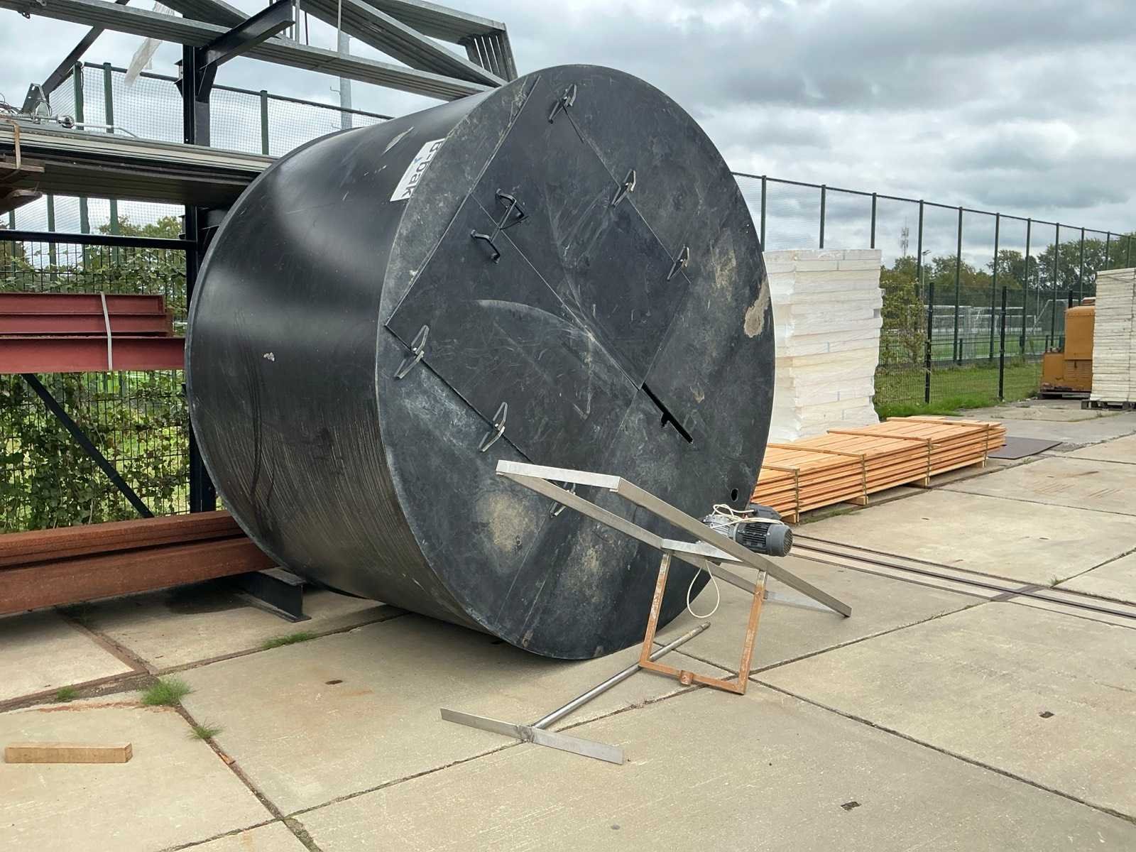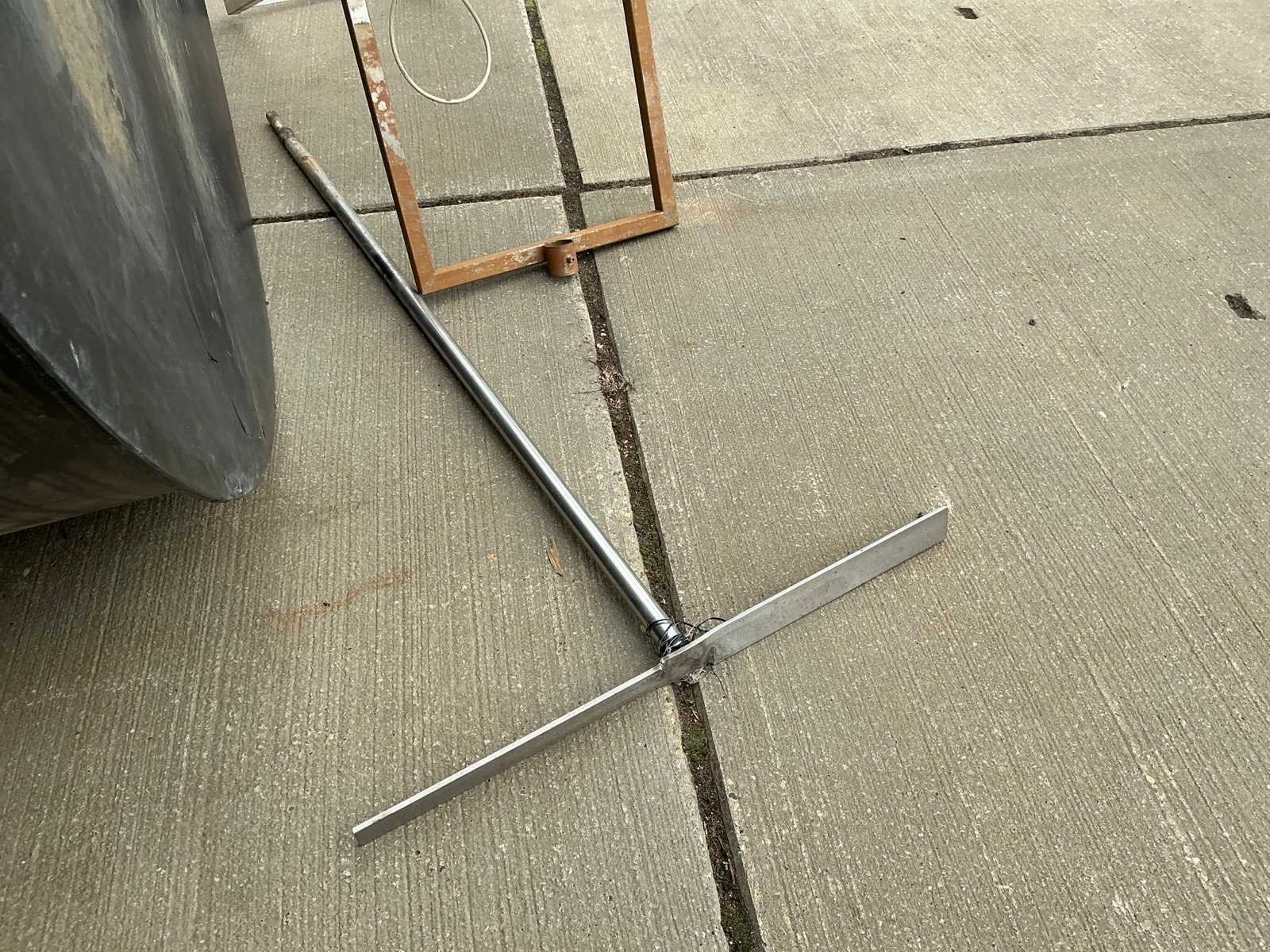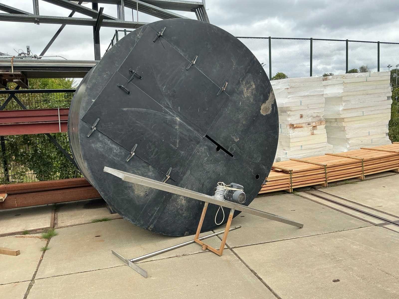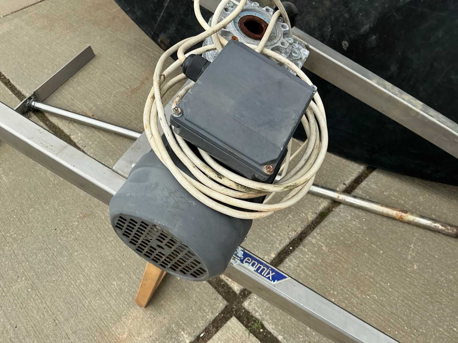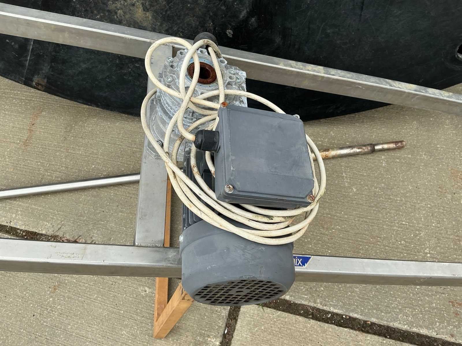 Tank diameter is 2620 mm; tank hoogte is 1520 mm; met elektromotor op RVS frame; met RVS schoep aan stang Mixer: true Mangat: true