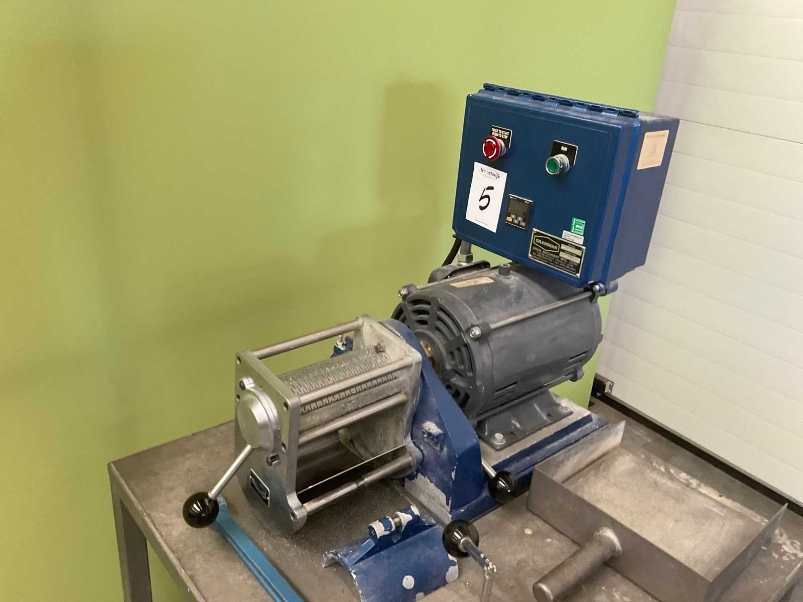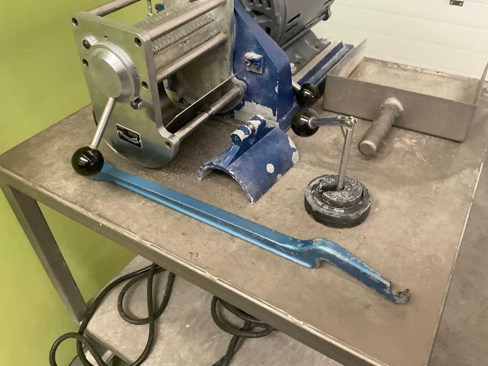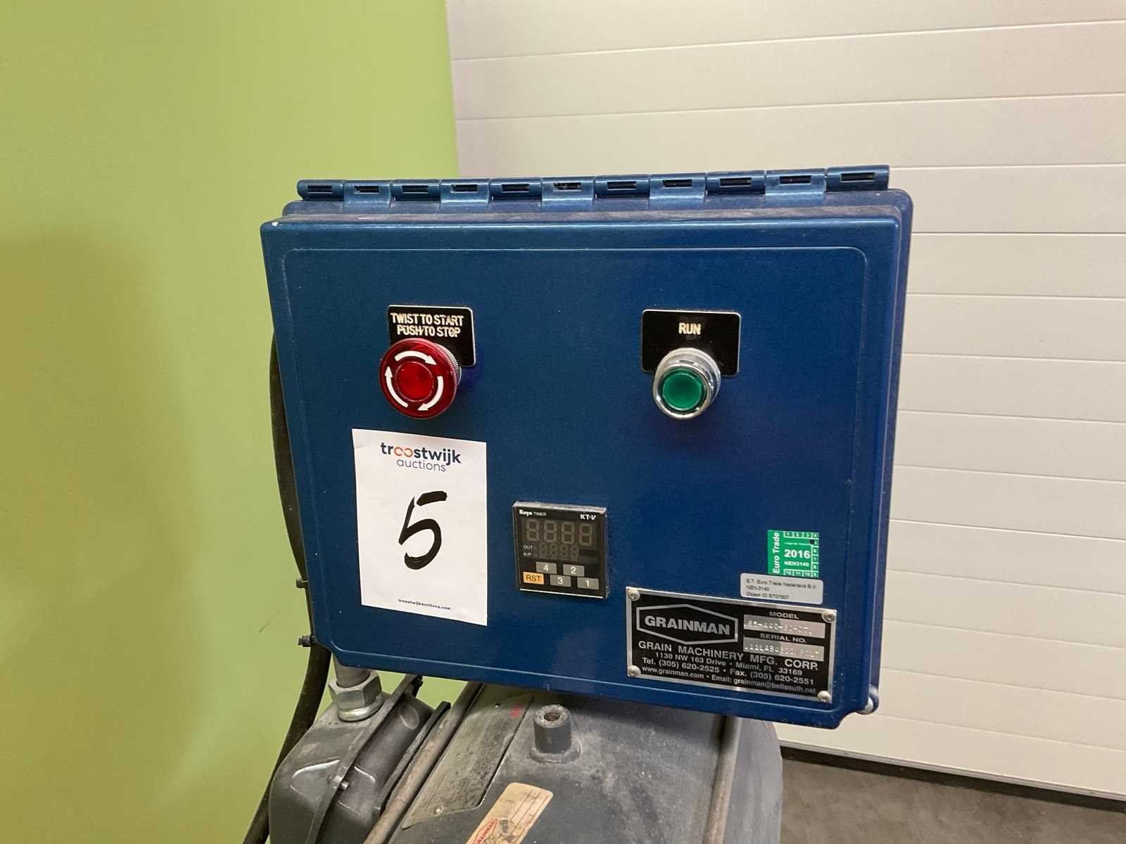 Inclusief: mobiel onderstel. Merk: Grainman Type: 65-440-60-DT Serienummer: 11LAB4822/8217 Werkbreedte: 150mm Aansluiting: 400V Totale afmeting L: 800mm Totale afmeting Breedte: 800mm Totale afmeting Hoogte: 1500mm
