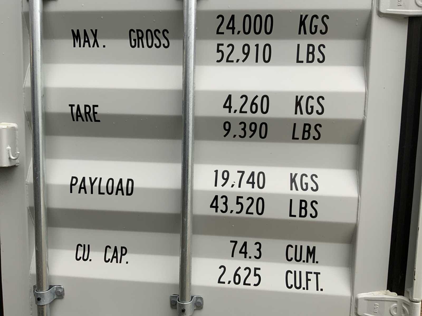 40FT HQ container; unused ; maximaal laadvermogen 24000KG; lock box; fork pockets; Koper dient zelf deze container te laden doormiddel van kraan of grote heftruck; 6140 Type: QP-SOSQ-1602 Eigen gewicht: 4260kg Totale afmeting L: 12200mm Totale afmeting Breedte: 2500mm Totale afmeting Hoogte: 2900mm