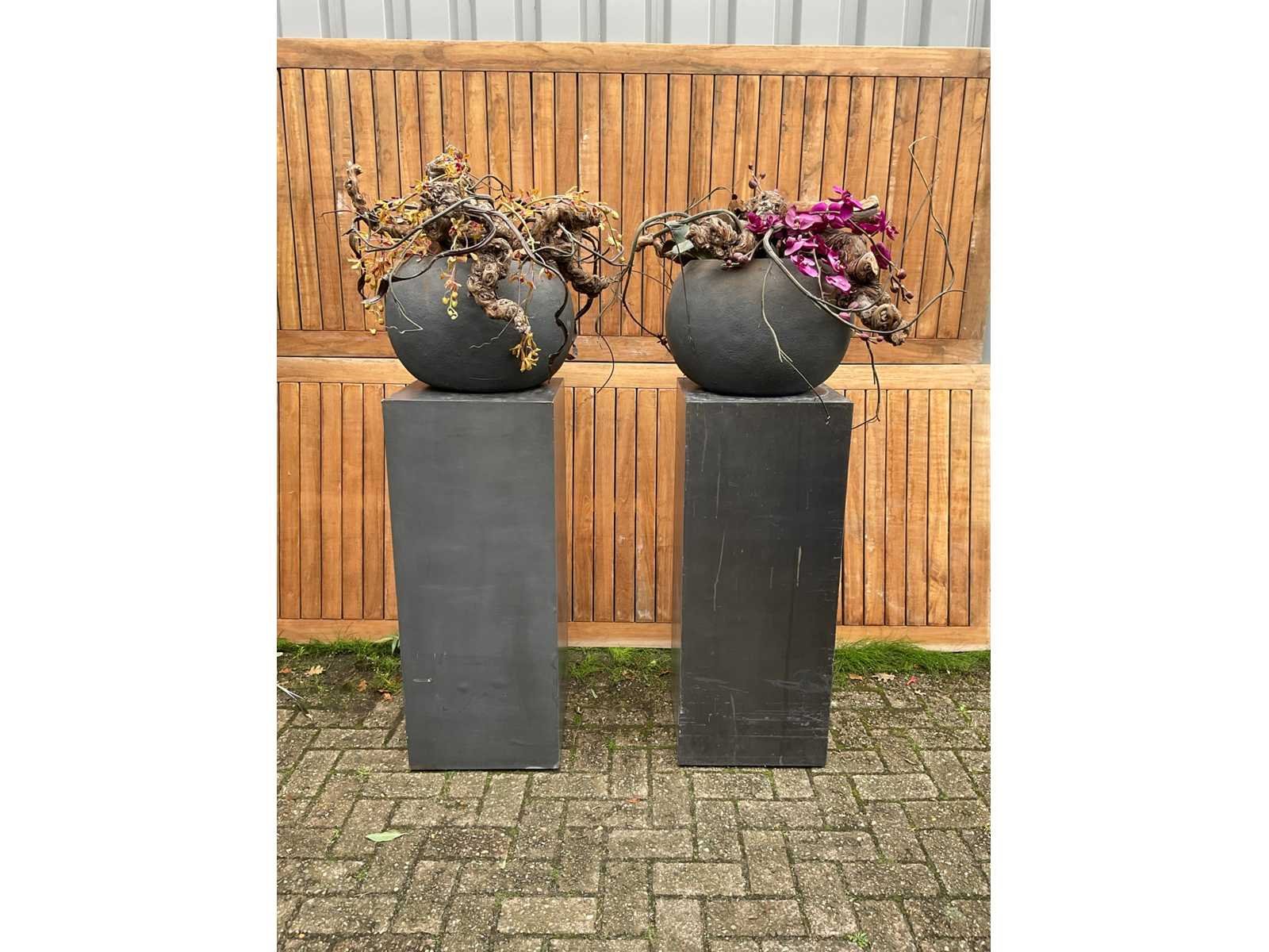 Decoratiebloempot op loden zuil (2x)