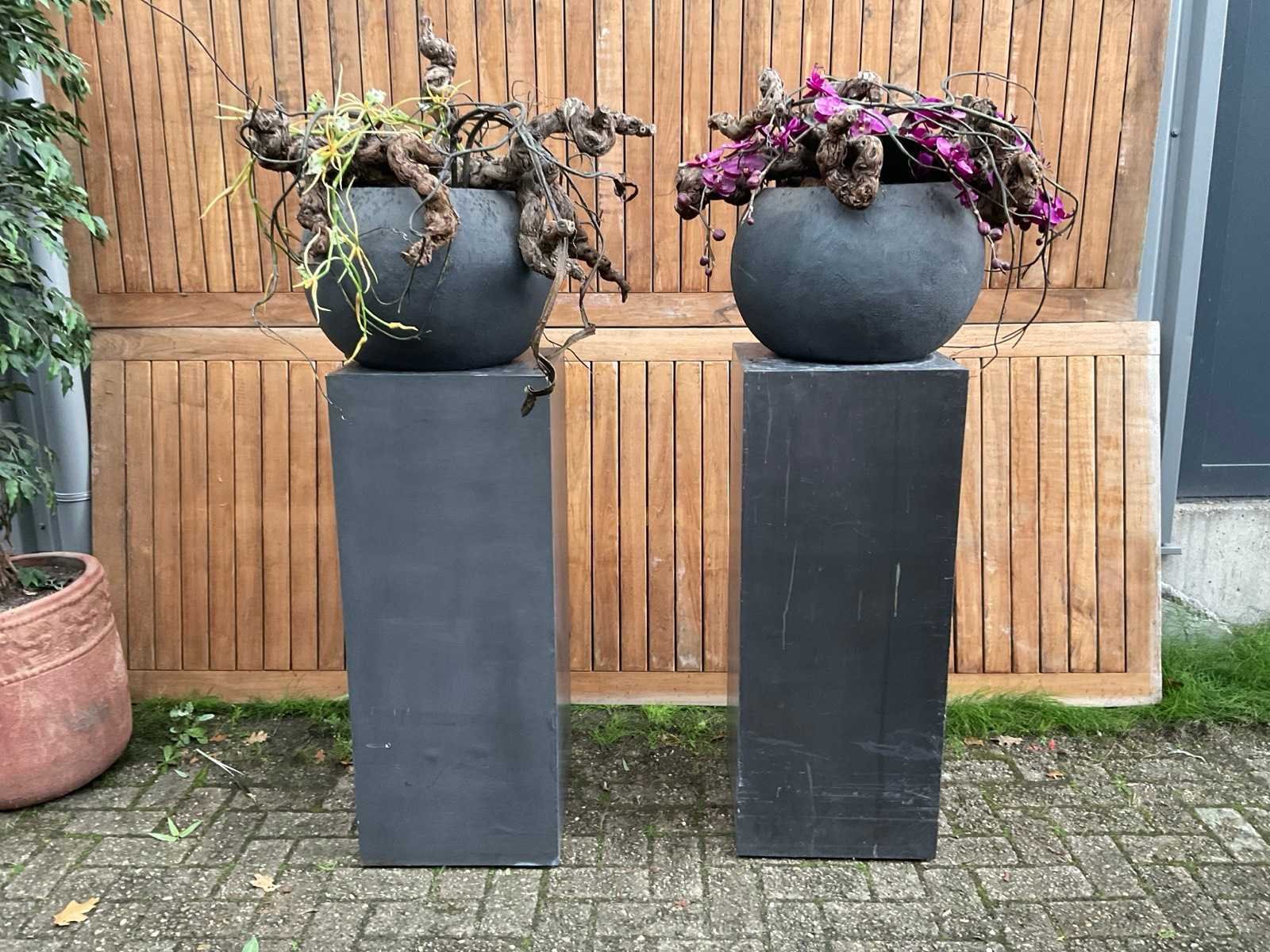 Decoratiebloempot op loden zuil (2x)