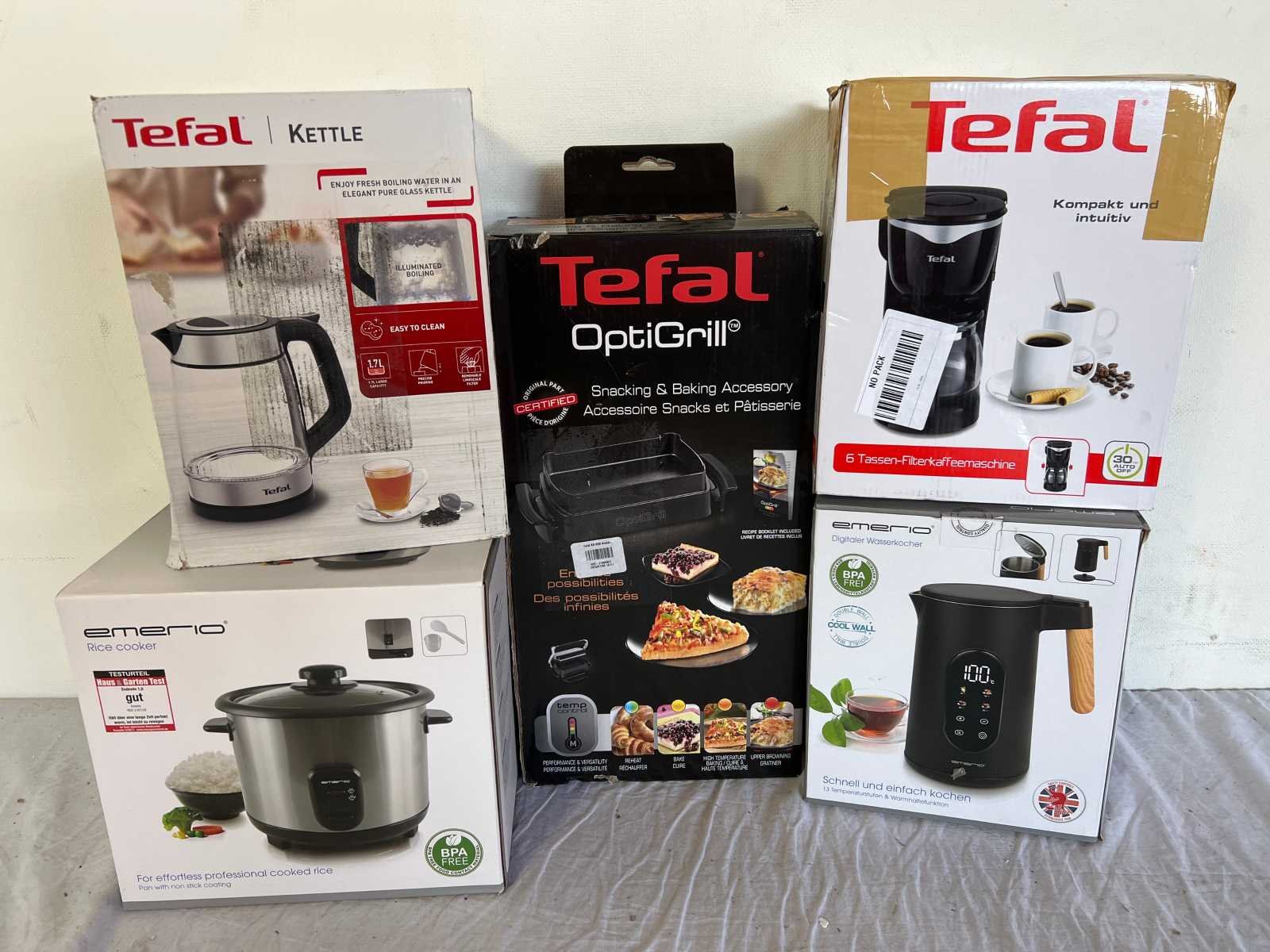 Dit kavel is afkomstig van een grote retailer. De retourgoederen zijn te gebruiken voor onderdelen en er kunnen accessoires missen. Daarnaast kunnen er gebruikssporen zijn op het product of kan de verpakking missen of beschadigd zijn. Het artikel is niet gecontroleerd of getest. Om een goed beeld te krijgen adviseren wij om gebruik te maken van de kijkdag. De kijkdag vindt plaats op de dag van sluiting. Aanmelden voor de kijkdag kan via aanmelden@troostwijkauctions.com Within 7 days Merk: Emerio, Tefal