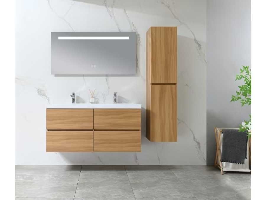 Type: 9015H. Afmeting: 3-delige set: 1 * Wastafelmeubel - 1200x450x600mm, 1 * Zijkast - 1500x350x350mm, 1 * Spiegel- 1200x600mm. Voorzien van: Kranen inclusief pop-up afvoer – 4 stevige metalen lades - Softclose lade systeem - LED spiegel met anti-fog systeem - Voorgemonteerde zijkast en wastafelmeubel. Merk: Vonato Model: Naturis 120 Product type: 2-Persoons 120 cm Hoogte: 60cm Lengte: 45cm Materiaal: Melamine, kunstmarmer Kleur: Licht hout decor Kraan: Inclusief 2 kranen Wastafel: Inclusief dubbele wastafel Spiegelkast: Nee Spiegel: Ja Spiegel met verlichting: Ja Verlichting: Ja Onderkast: Ja Lades: 4 Bevestigingsmateriaal: Ja