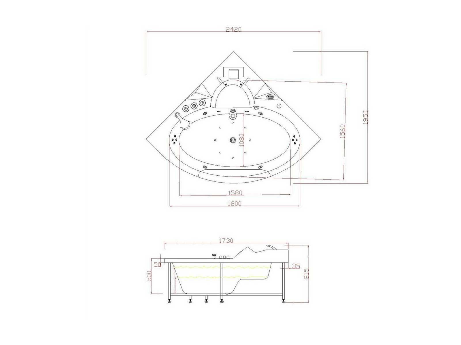 Type: NR1701W. Waterjets: 4 Grote- en 8 kleine waterjets - 16 Airbubble jets. Voorzien van: 480 tot 700 liter watercapaciteit - Heater (1,5 kW) - Waterpomp (1,1 kW) - Luchtpomp (0,25 kW) - Control panel - Handdouche - 2 Hoofdkussens - Waterval kraan - Water regulator - Onderwater LED-verlichting - Verchroomd RVS Kraan - Ozone regulator - Speaker - Armleuning - Handdoeken plank. Merk: Vonato Model: Fervano Product type: Hoek Kleur: Wit Lengte: 172.5cm Hoogte: 78cm Materiaal: Gegalvaniseerd stalen frame en Acryl bad