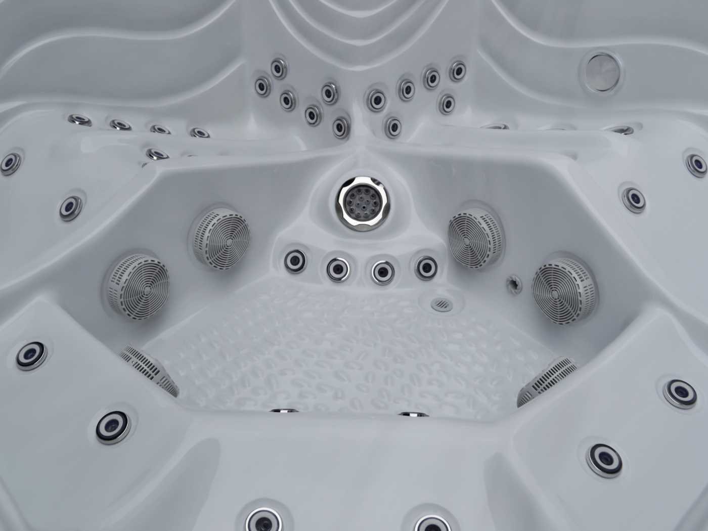 Type: PF SPA 86. Model: Vrijstaand. Aantal personen: 5 persoons bad. Frame: RVS. Besturing: Balboa spa pack BP6013G2 3kW + SpaTouch 2T. Media apparatuur: 2x Aquatic AV speakers, Bluetooth & WIFI. Verlichting: 11x onderwaterverlichting, 2x spa spotlight, 4x hoekverlichting, 3x LED fontein. Vermogen: Totaal vermogen 10,5 kW, 32A. 240 V, 50 HZ. Heater: Balboa Heater 3KW. Pompen: Circulatiepomp : WTC50M, Massagepomp: 3 x LP300. Voorzien van: Balboa WiFi - Waterval & 3 LED fonteintjes – Ozonator – 3 hoofdkussens – Drain – 2x Waterverdeler – 2x Lucht controller - 1 filter - Thermo cover – 2 Speakers – Isolatie – Trapje – Muziek luisteren via Bluetooth Merk: Vonato Model: Vistano Product type: Vrijstaand 5 persoons bad Spanning: 240V Filters: 1 filter Verlichting: 11x onderwaterverlichting, 2x spa spotlight, 4x hoekverlichting, 3x LED fontein Inhoud: 1150l Pompen: Circulatiepomp : WTC50M, Massagepomp: 3 x LP300 Jets: 139 Aantal personen: 5 Kleur: Grijs bad met grijze skirt Lengte: 220cm Hoogte: 90cm Materiaal: RVS frame
