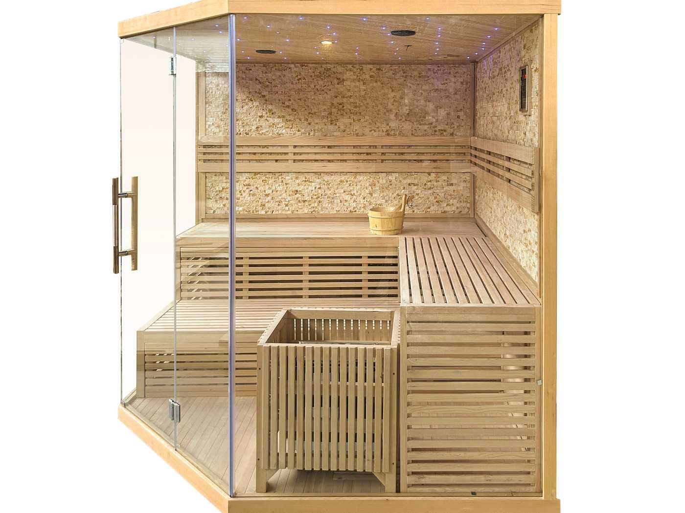 Type: SMS-L101 Verwarming: Kachel (6kW / 220V) verwarming tot 90 graden. Details: Plafond met sterrenhemel sfeerverlichting - Achterwanden zijn voorzien van lichte natuurstenen look strips. Voorzien van:Helder veiligheidsglas 8 mm - Hittebestendige deurknoppen - Ca. 20 kg. lavastenen - Touchscreen Control Panel - Bluetooth integratie voor muziek met dubbele speaker (eenvoudig te bedienen via het Control Panel) - 3 Comfortabele zit/ligbanken - Ventilatie - Houten emmer met scheplepel - Zandloper - Thermometer. Merk: Vonato Model: Soliana Product type: Prisma met kachel Kleur: Hout Lengte: 220cm Hoogte: 210cm Materiaal: Hout met helder veiligheidsglas