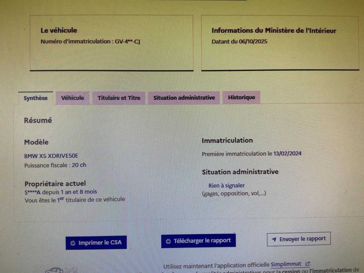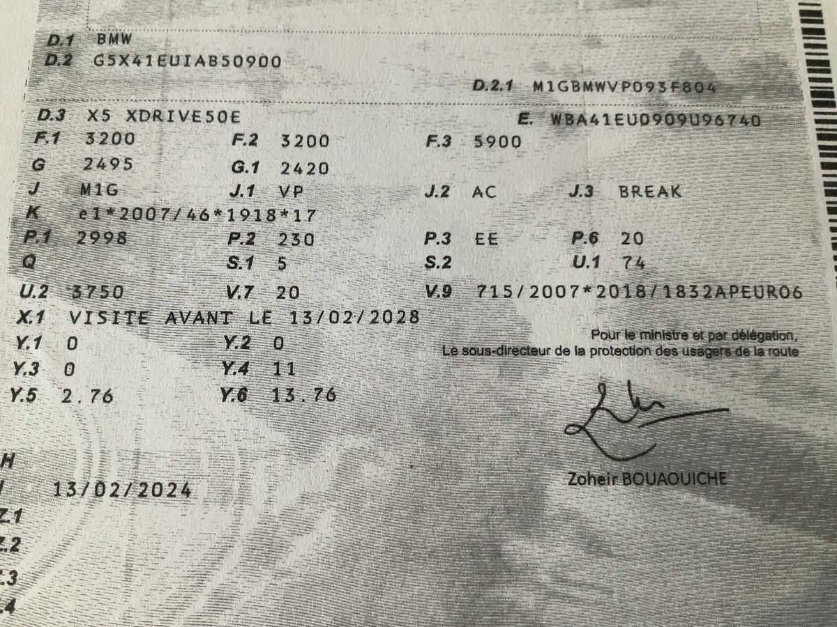 Wij kunnen geen tijdelijk kenteken uitgeven voor dit voertuig. Merk: BMW Model: X5 Type: xDrive 50e M Sport Bouwjaar: 2023 Afgelezen kilometerstand: 27982km Cilinderinhoud: 2998cc Vermogen (kW): 360kW Brandstof: Hybride Benzine Chassisnummer: WBA41EU0909U96740 Datum eerste toelating: 02-2024 APK vervaldatum: 02-2028 Vermogen (pk): 489hp Aandrijving: Start en rijdt Aantal zitplaatsen: 5 Kleur: Grijs Transmissie: Automaat Aantal deuren: 5 Aantal sleutels: 2 Aantal cilinders: 6 Carrosserie: SUV Nationaliteit documenten: Frankrijk Start en rijdt: Start and drive startinformatie : Start en rijdt